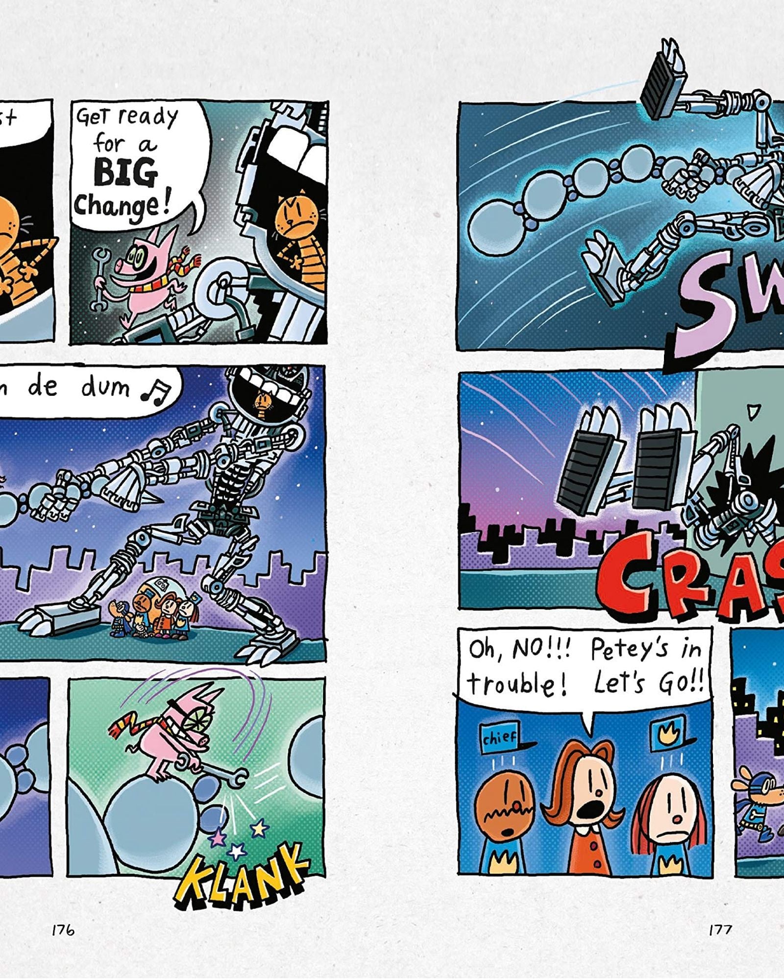 انطلقوا في ضحك مع الكتاب الخامس من سلسلة "الرجل الكلب" المضحكة والملونة، من مبتكر شخصية "كابتن أندر بانتس"! عندما تُهيمن مجموعة جديدة من الأشرار على المدينة، يُستدعى الرجل الكلب للتدخل - وهذه المرة ليس وحيدًا. برفقة قطة صغيرة لطيفة وروبوت مميز، يجب على أبطالنا إنقاذ الموقف بالانضمام إلى حليف غير متوقع: بيتي، أكثر قط شرير في العالم. ولكن هل يستطيع بيتي الشرير تجنب الانتقام والمغامرة نحو الفضيلة؟ سلسلة "الرجل الكلب" لداف بيلكي، ذات الشعبية الكبيرة، تجذب القراء من جميع الأعمار، وتستكشف مواضيع إيجابية عالمية، بما في ذلك: التعاطف، واللطف، والمثابرة، وأهمية الصدق مع الذات.