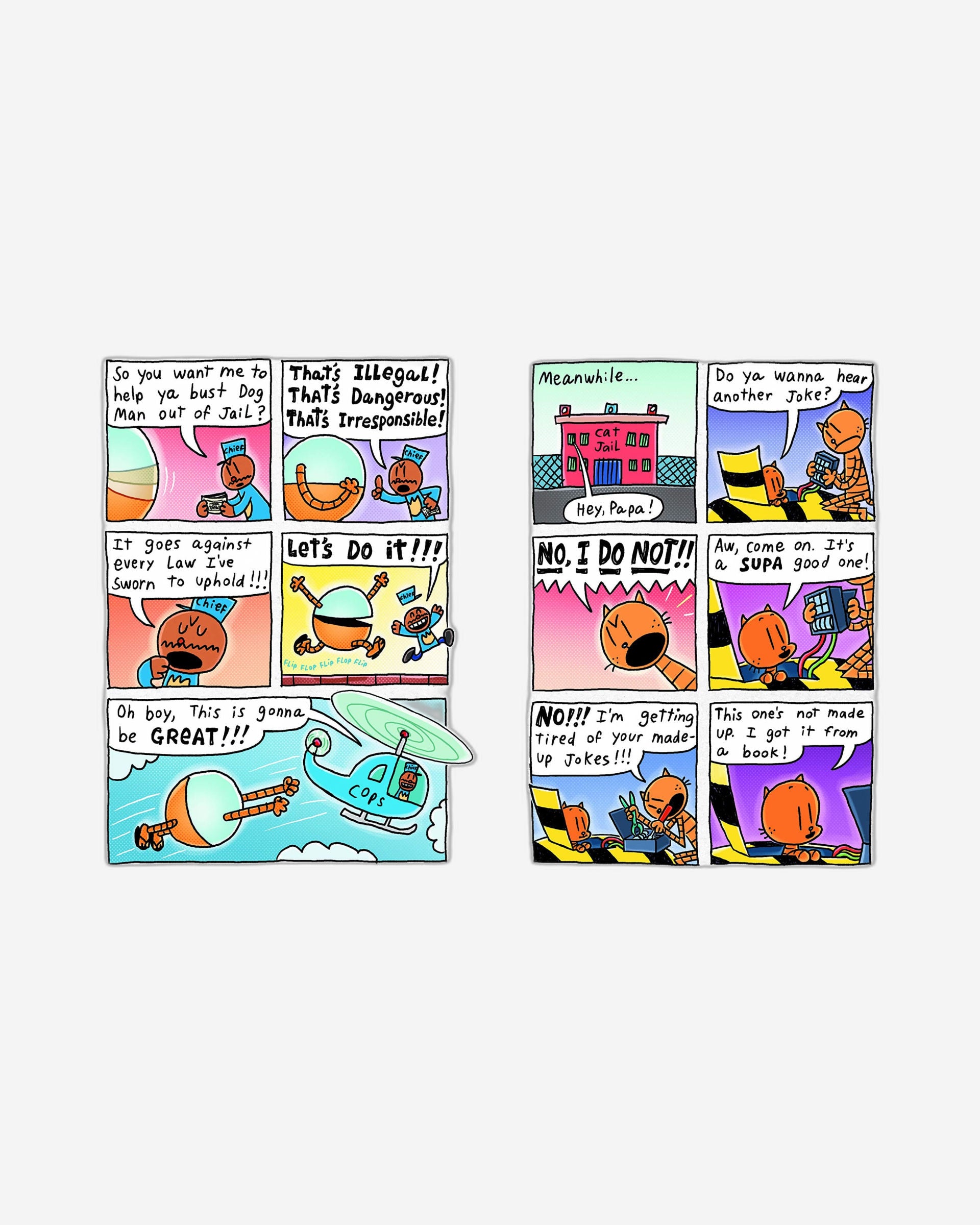 انطلقوا في ضحك مع الكتاب السادس من سلسلة "الرجل الكلب" المضحكة والملونة والمصورة، من مبتكر شخصية "كابتن أندر بانتس"! هل "الرجل الكلب" شريرٌ حتى النخاع؟ يُرسل الكلب البطل إلى السجن لجريمة لم يرتكبها! بينما يسعى أصدقاؤه لإثبات براءته، يُكافح "الرجل الكلب" ليجد مكانه بين الكلاب والبشر. كونه جزءًا من كلا العالمين، هل سيتأقلم تمامًا مع أحدهما يومًا ما؟ سلسلة "الرجل الكلب" الشهيرة لداف بيلكي تجذب القراء من جميع الأعمار، وتستكشف مواضيع إيجابية عالمية، منها: التعاطف، واللطف، والمثابرة، وأهمية الصدق مع الذات. صفحات ملونة بالكامل.