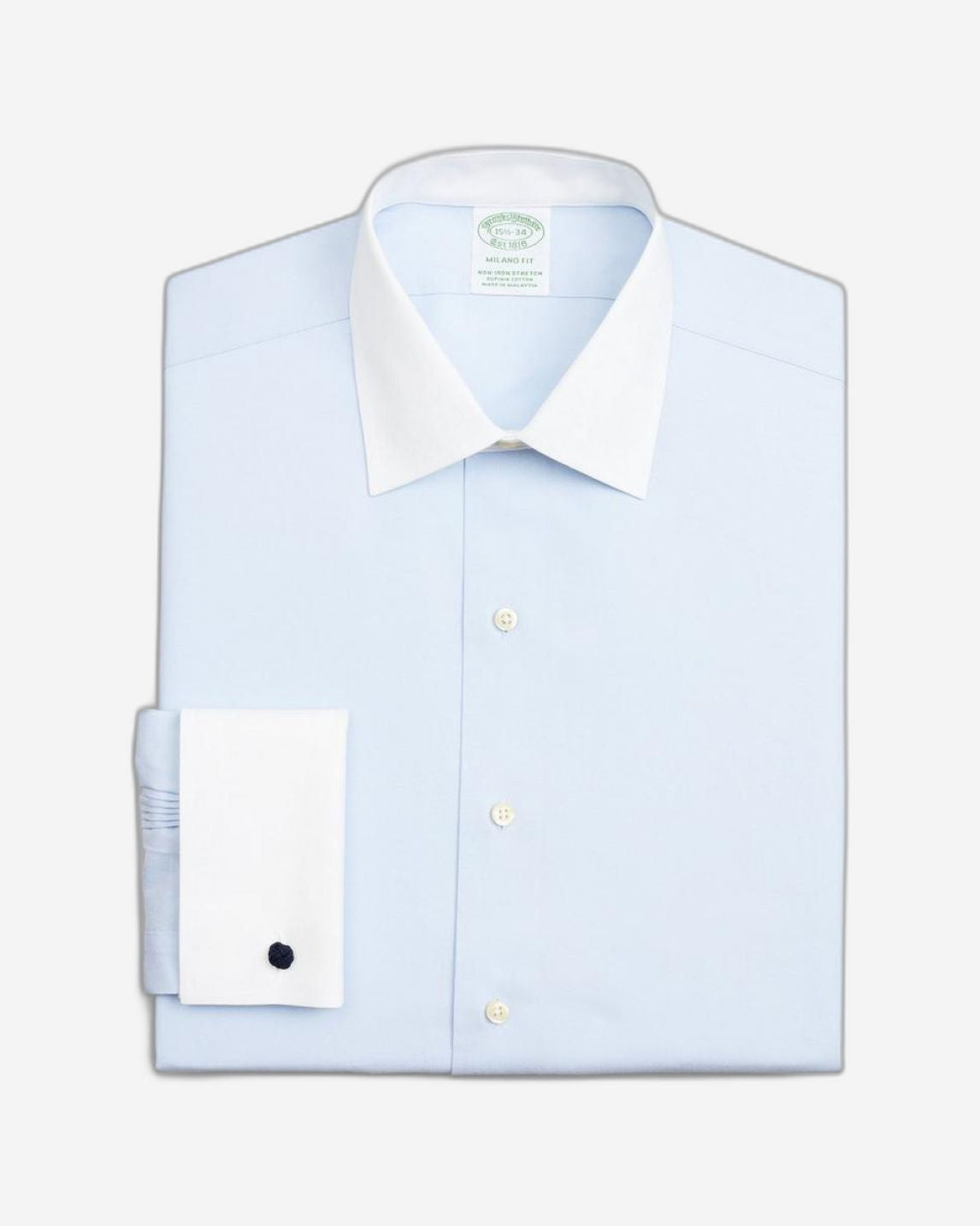 قميص ميلانو مطاطي بقصّة Slim Fit، ياقة Ainsley متباينة غير قابلة للكي، وأساور فرنسية