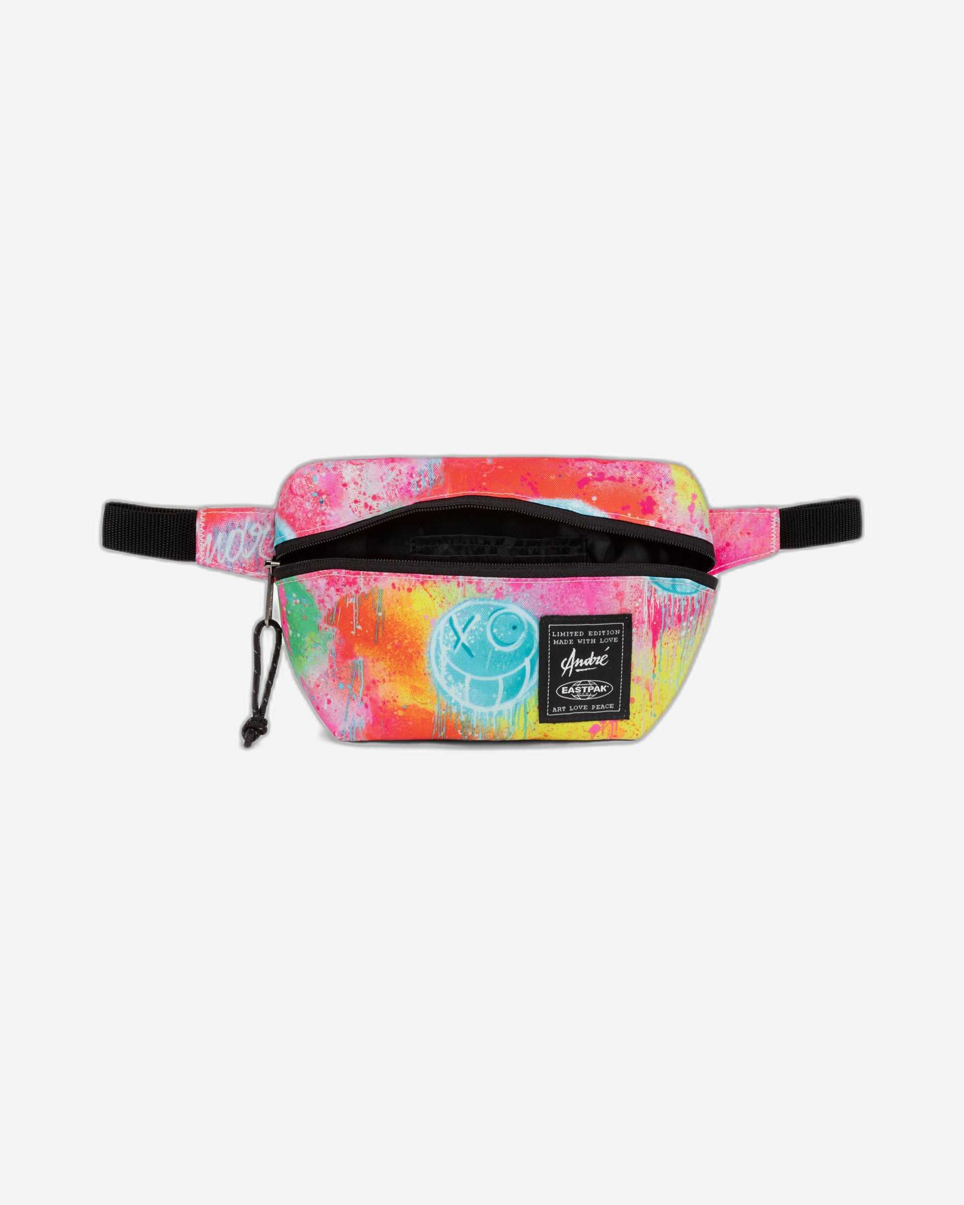حقيبة الخصر من إيستباك، بجيبها الأمني الواسع، تُصبح قطعة أساسية في فن الشارع، بالتعاون مع فنان الجرافيتي أندريه. عدّلي حزام حقيبة الخصر هذه لتنسيقها بطرق مختلفة، ونظّمي مقتنياتك الثمينة في فتحات البطاقات.