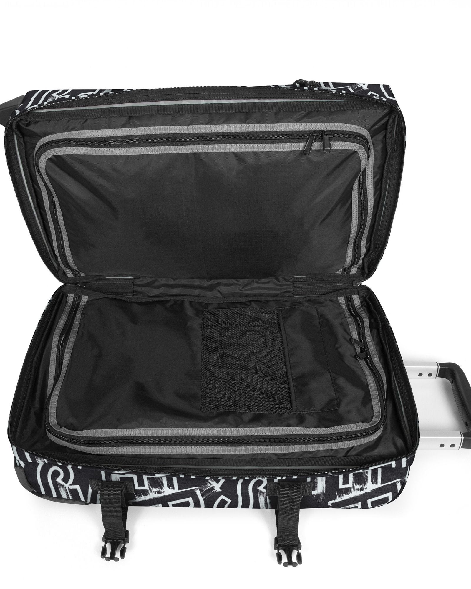 تتميز حقيبة السفر المحمولة لدينا بكتابات جريئة تُذكّر بفنون الجرافيتي الحضرية. املأ حجرات الأمتعة المزدوجة وثبّت أمتعتك بالقفل المدمج. تتميز هذه الحقيبة المتينة بأنابيب من الألومنيوم، وألواح واقية، ونقش ماسي على المقبض.