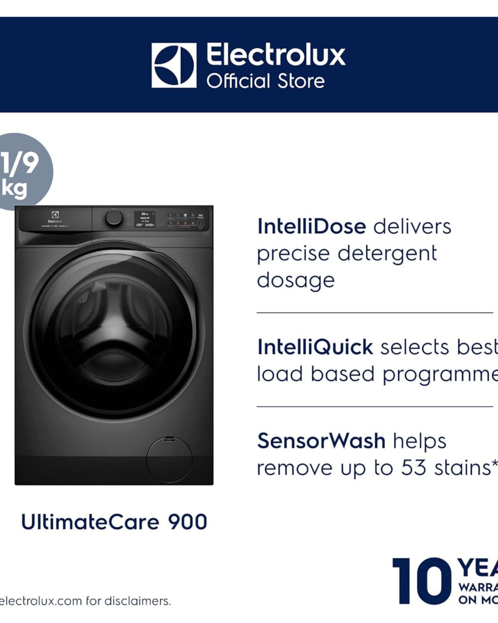 غسالة ومجفف ملابس إلكترولوكس سعة 1.9 كجم مع 17 برنامجًا و1400 دورة في الدقيقة، تحميل أمامي مع عاكس إيكو، نظام غسيل وتجفيف مزدوج، دوفيت كير 60/واش دراي 60، EWW1142R9SC