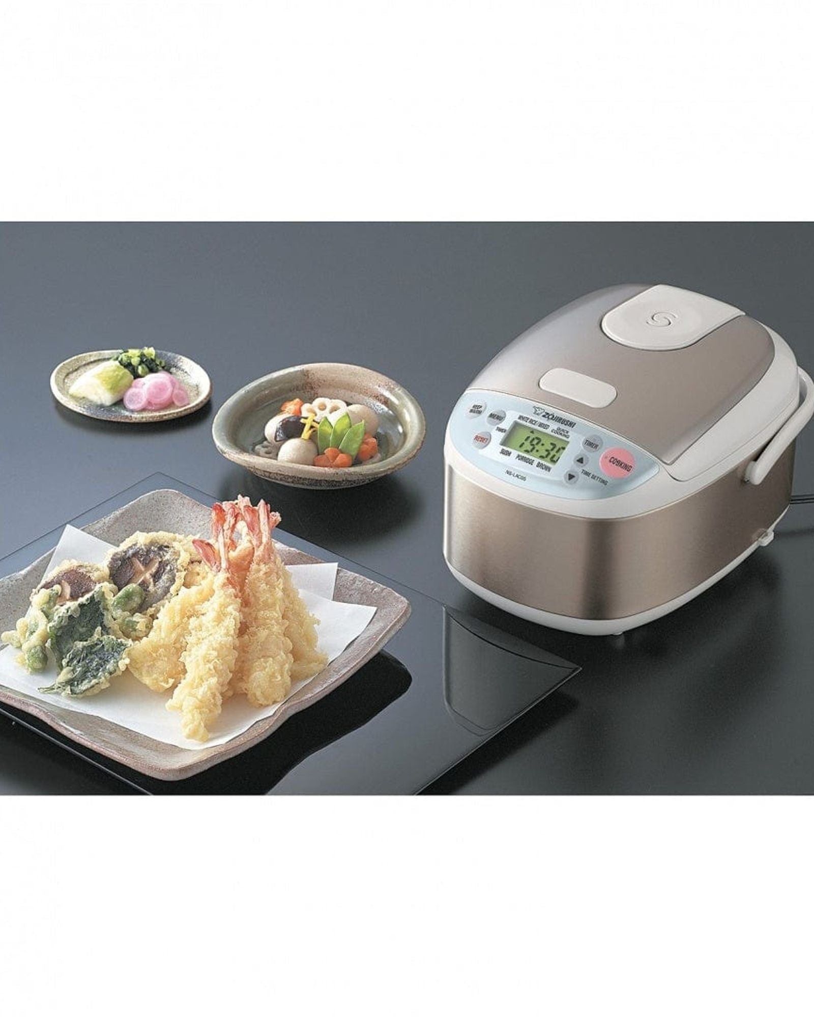 جهاز طهي الأرز Micom Fuzzy Logic مع تصميم جذاب وفريد من نوعه من الفولاذ المقاوم للصدأ المتين المطلي بطبقة شفافة