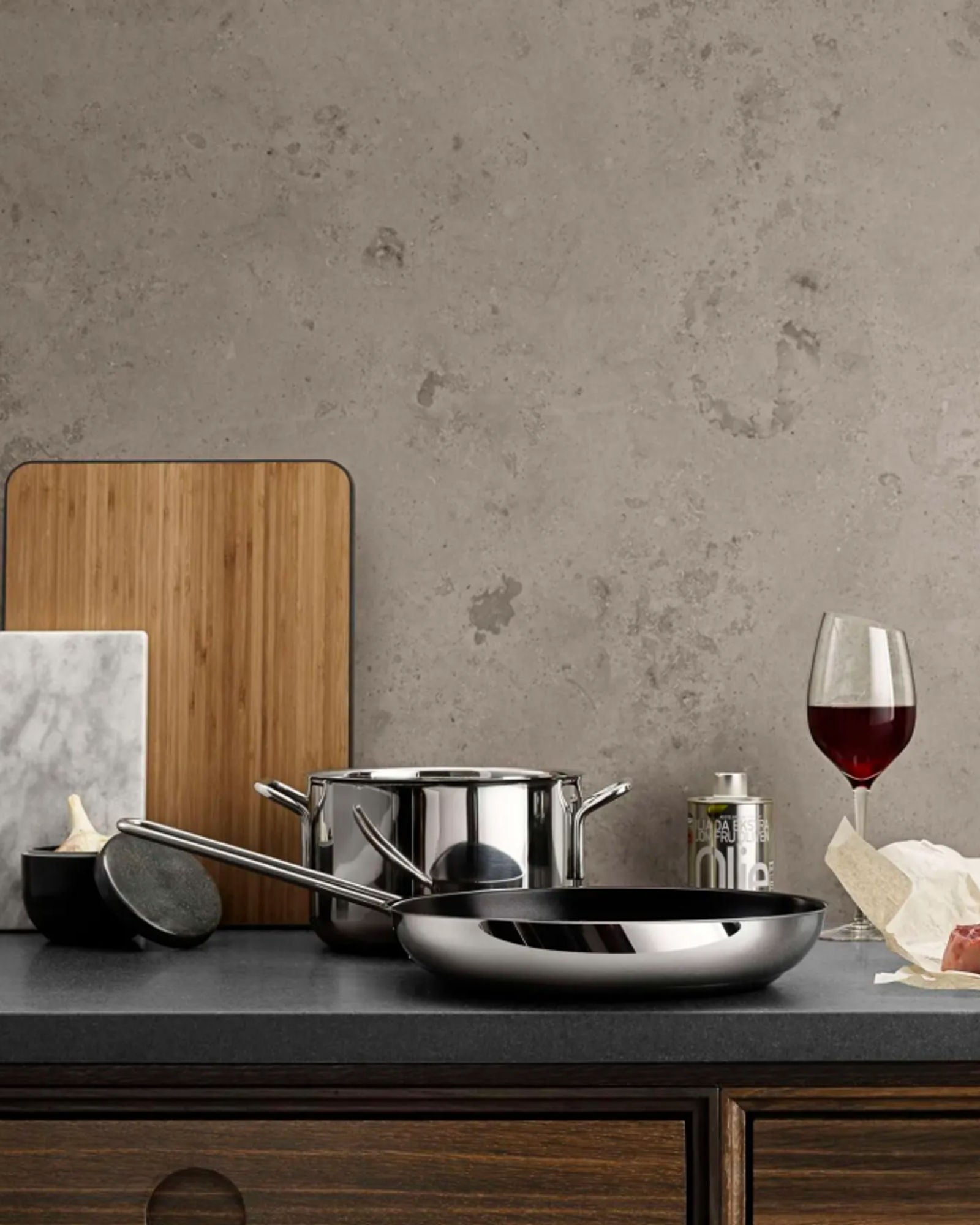 مقلاة إيفا سولو 202513 متعددة الاستخدامات، قطرها 30 سم، مصنوعة من 90% من الفولاذ المقاوم للصدأ المعاد تدويره. تتميز بطبقة سيراميك سليب-ليت® المتينة غير اللاصقة، مما يضمن سهولة إخراج الطعام وتنظيفها. مناسبة لجميع مصادر الحرارة، بما في ذلك الحث الحراري، وآمنة للاستخدام في الفرن حتى 400 درجة مئوية. يوفر مقبضها المصنوع من الفولاذ المقاوم للصدأ والمصمم هندسيًا قبضة مريحة، مما يجعلها مثالية للطهي اليومي.