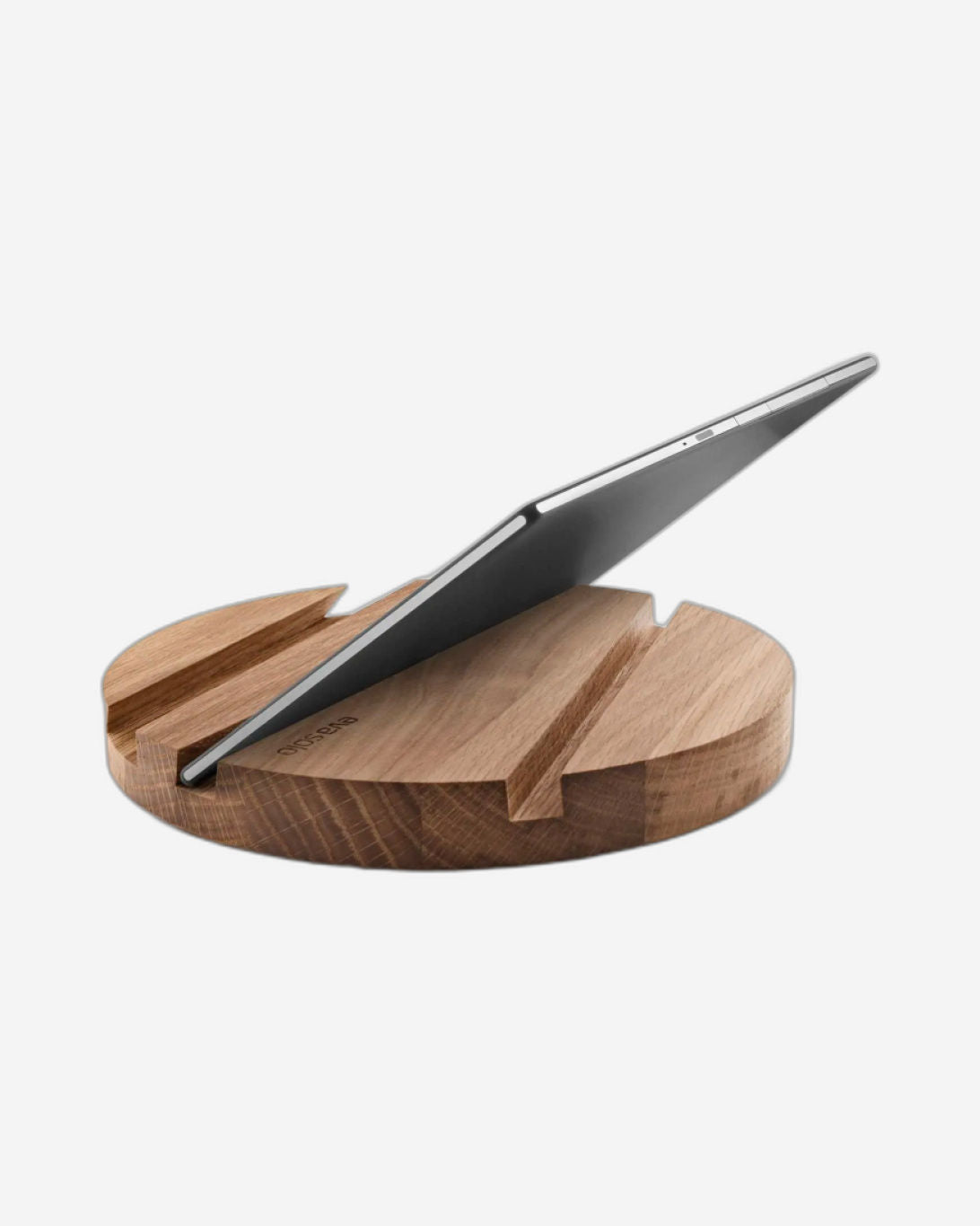 سجادة إيفا سولو الذكية (بلوطية) هي ملحق مطبخ متعدد الاستخدامات، يمكن استخدامه كحامل ثلاثي القوائم وحامل للهواتف الذكية والأجهزة اللوحية. مصنوعة من خشب البلوط المدهون بأخاديد بزوايا مختلفة، تتيح لك متابعة الوصفات أو مشاهدة الفيديوهات دون استخدام يديك أثناء الطهي، ثم حماية أسطحك بوضع المقالي أو الأطباق الساخنة عليها عند التقديم. مزيج مدروس من الوظائف والتصميم من تولز ديزاين.