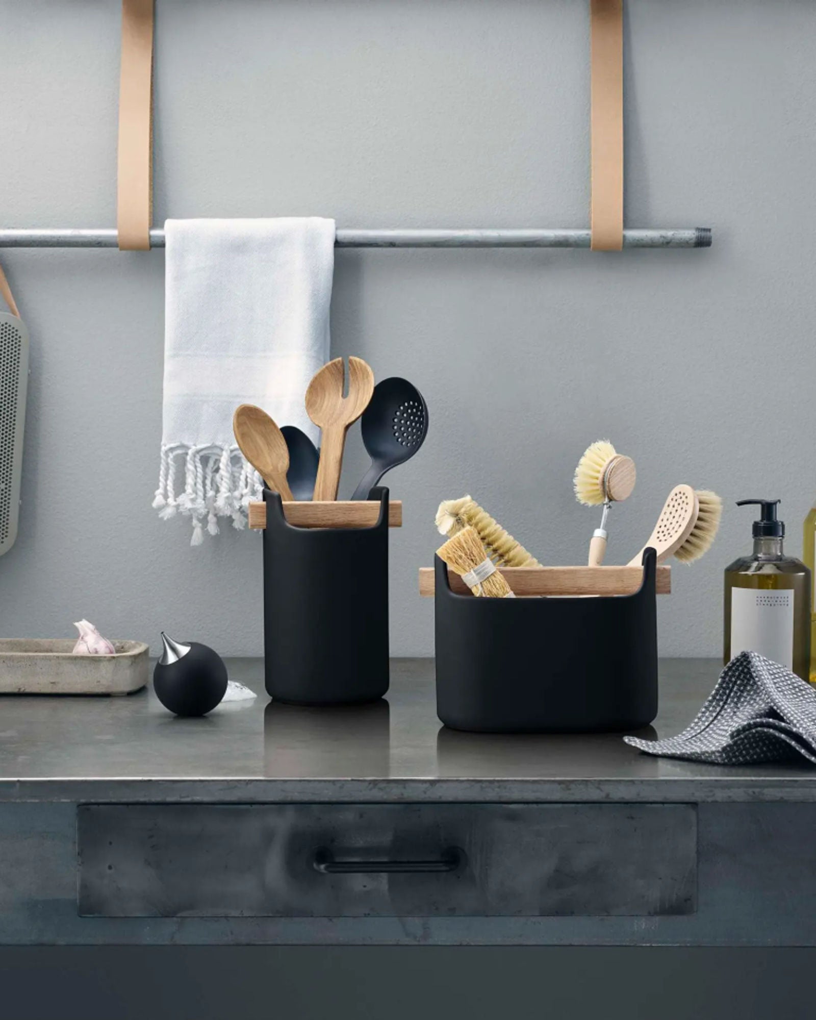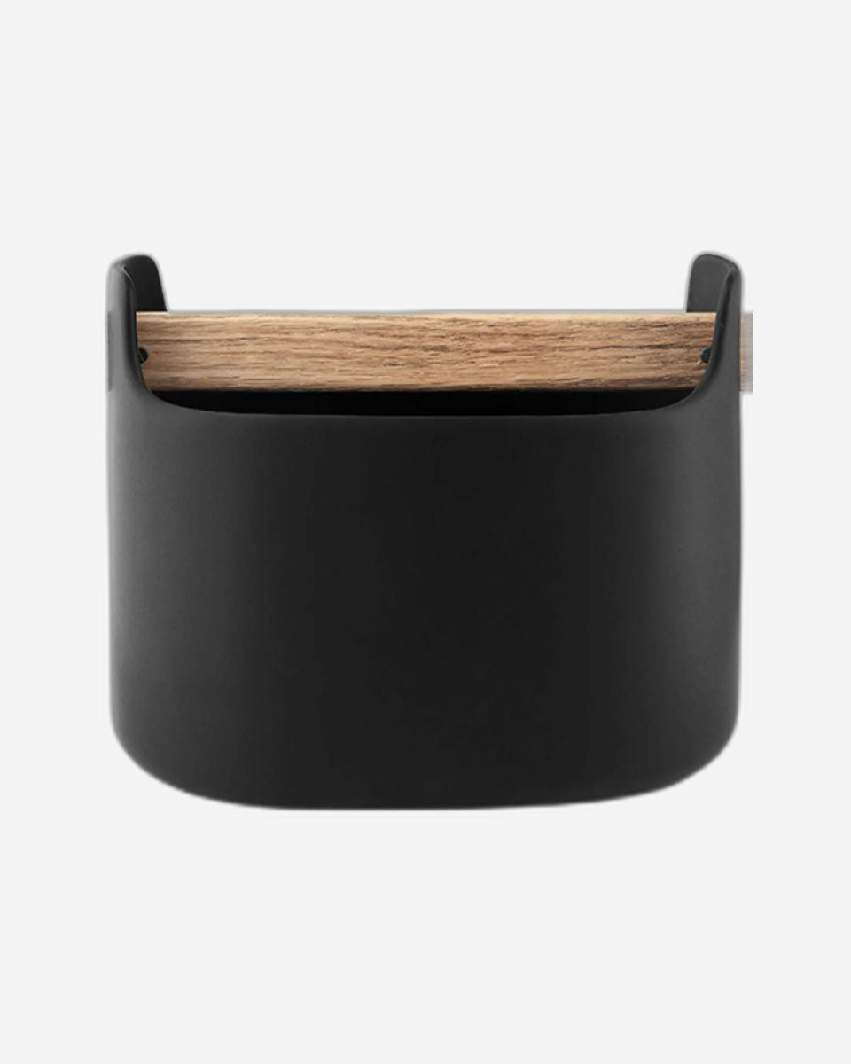 صندوق الأدوات إيفا سولو 520424 H15 باللون الأسود هو حاوية تخزين متعددة الاستخدامات مصممة لمساعدتك في تنظيم مطبخك أو حمامك أو مساحة عملك. مصنوع من السيراميك المتين بمقبض من خشب البلوط الطبيعي، ويجمع بين العملية ولمسة من الأناقة الاسكندنافية. سواء كنت تخزن أدوات المطبخ أو مواد التنظيف أو مستلزمات المكتب، يوفر لك هذا الصندوق حلاً أنيقًا للحفاظ على ترتيب أغراضك بشكل منظم.