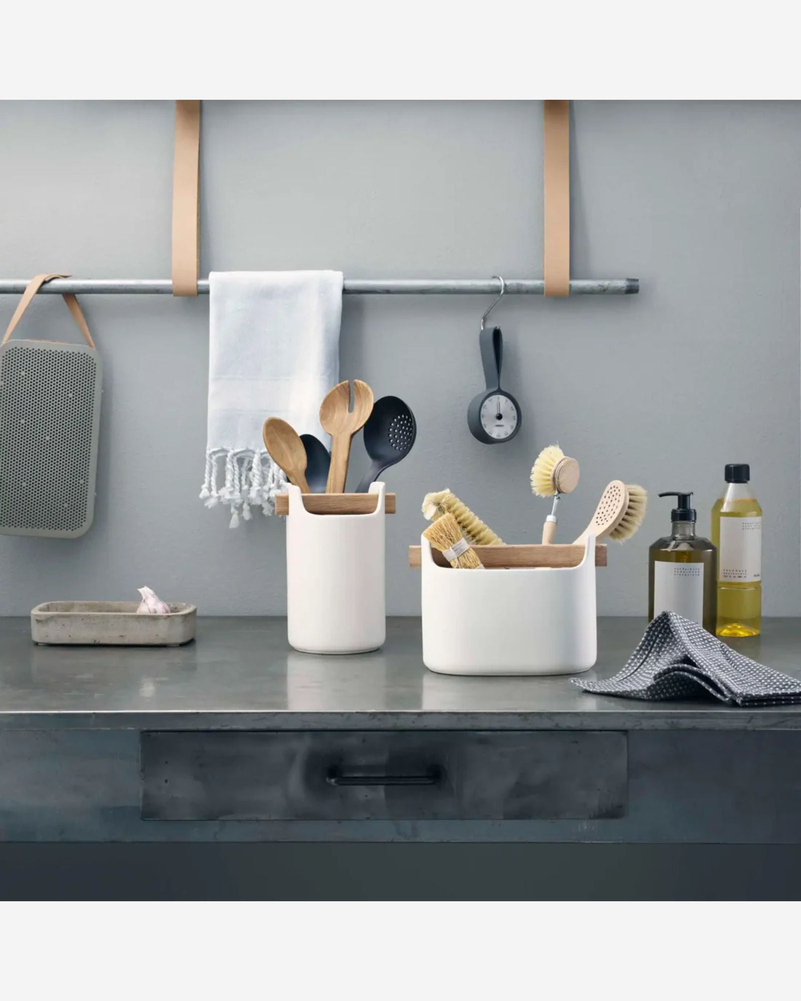 صندوق أدوات إيفا سولو 520426 مع ملعقة H15 باللون الأبيض هو حل تخزين أنيق ومتعدد الاستخدامات، مصمم للحفاظ على أدوات مطبخك الأساسية منظمة. مصنوع من السيراميك غير اللامع مع ملعقة من خشب البلوط الطبيعي مدمجة في الغطاء، يجمع هذا الصندوق بين العملية والتصميم الاسكندنافي. إنه مثالي لتخزين مواد مثل السكر والملح والتوابل، مما يضمن سهولة الوصول إليها والحفاظ على سطح عمل مرتب.