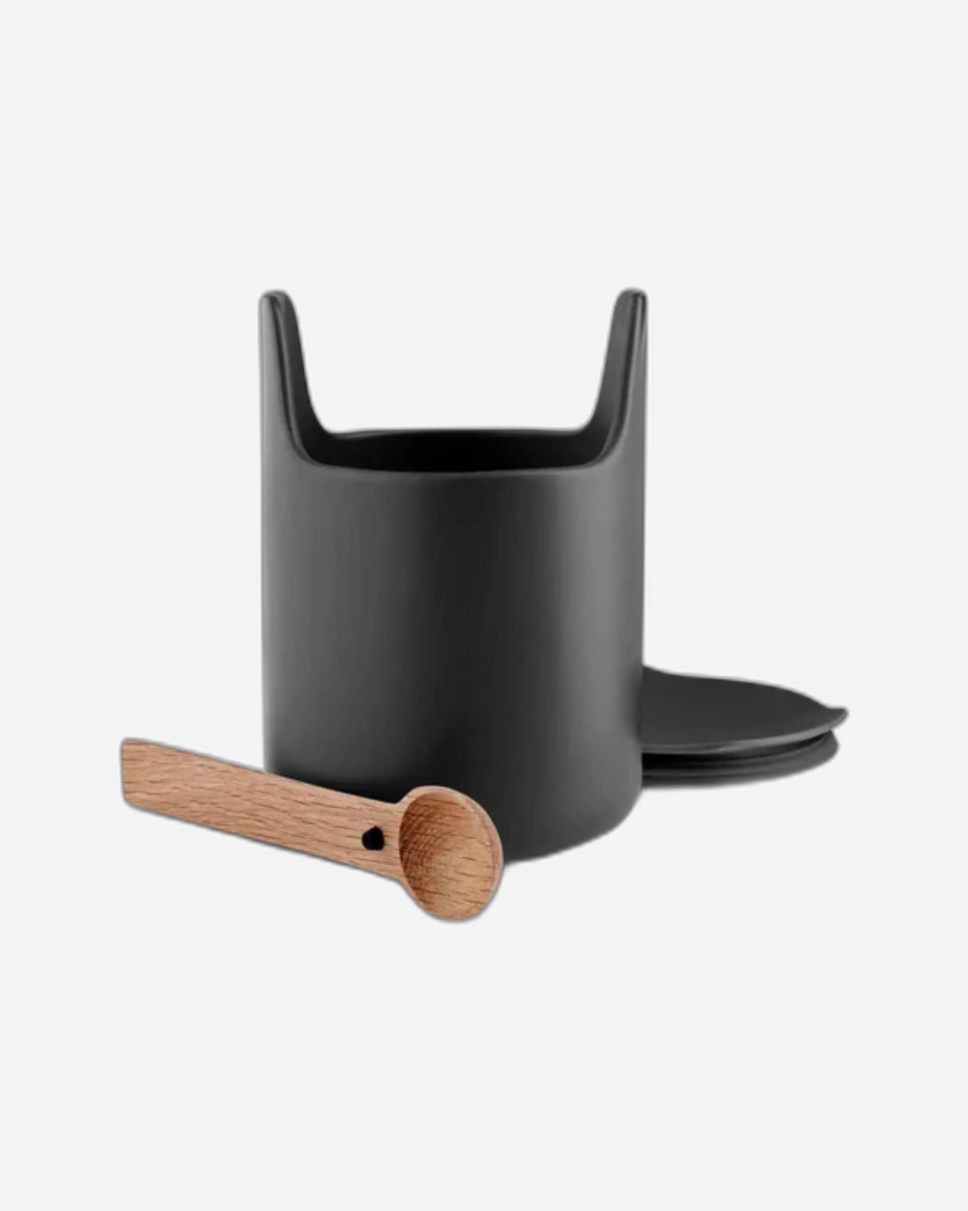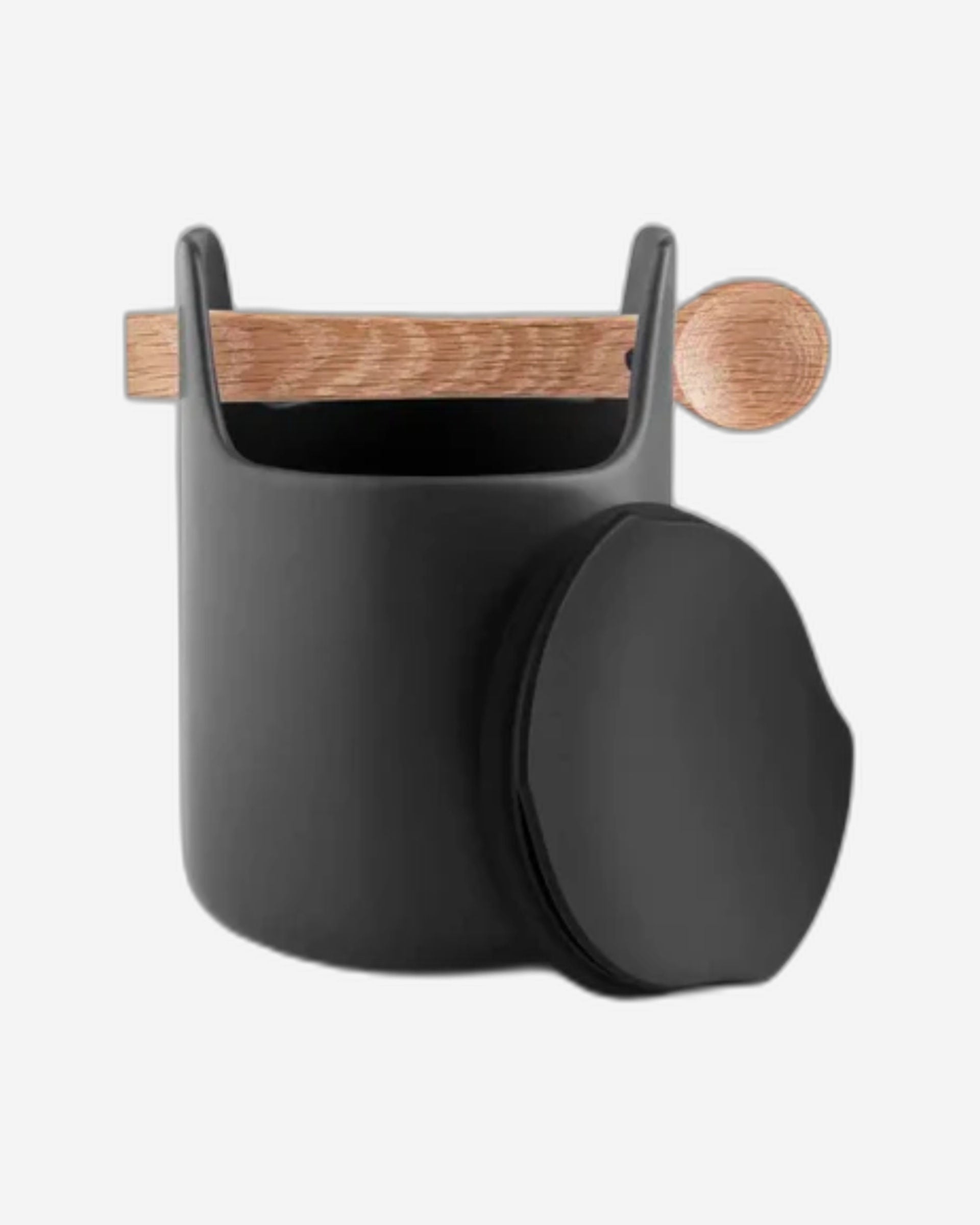 صندوق أدوات إيفا سولو 520428 مع ملعقة H15 باللون الأسود هو حل تخزين أنيق ومتعدد الاستخدامات، مصمم للحفاظ على أدوات مطبخك الأساسية منظمة. مصنوع من السيراميك المتين غير اللامع مع ملعقة من خشب البلوط الطبيعي مدمجة في الغطاء، يجمع هذا الصندوق بين العملية والتصميم الاسكندنافي. سواء كنت تخزن السكر أو الملح أو التوابل، فإنه يوفر حلاً أنيقًا للحفاظ على ترتيب أغراضك بشكل أنيق.