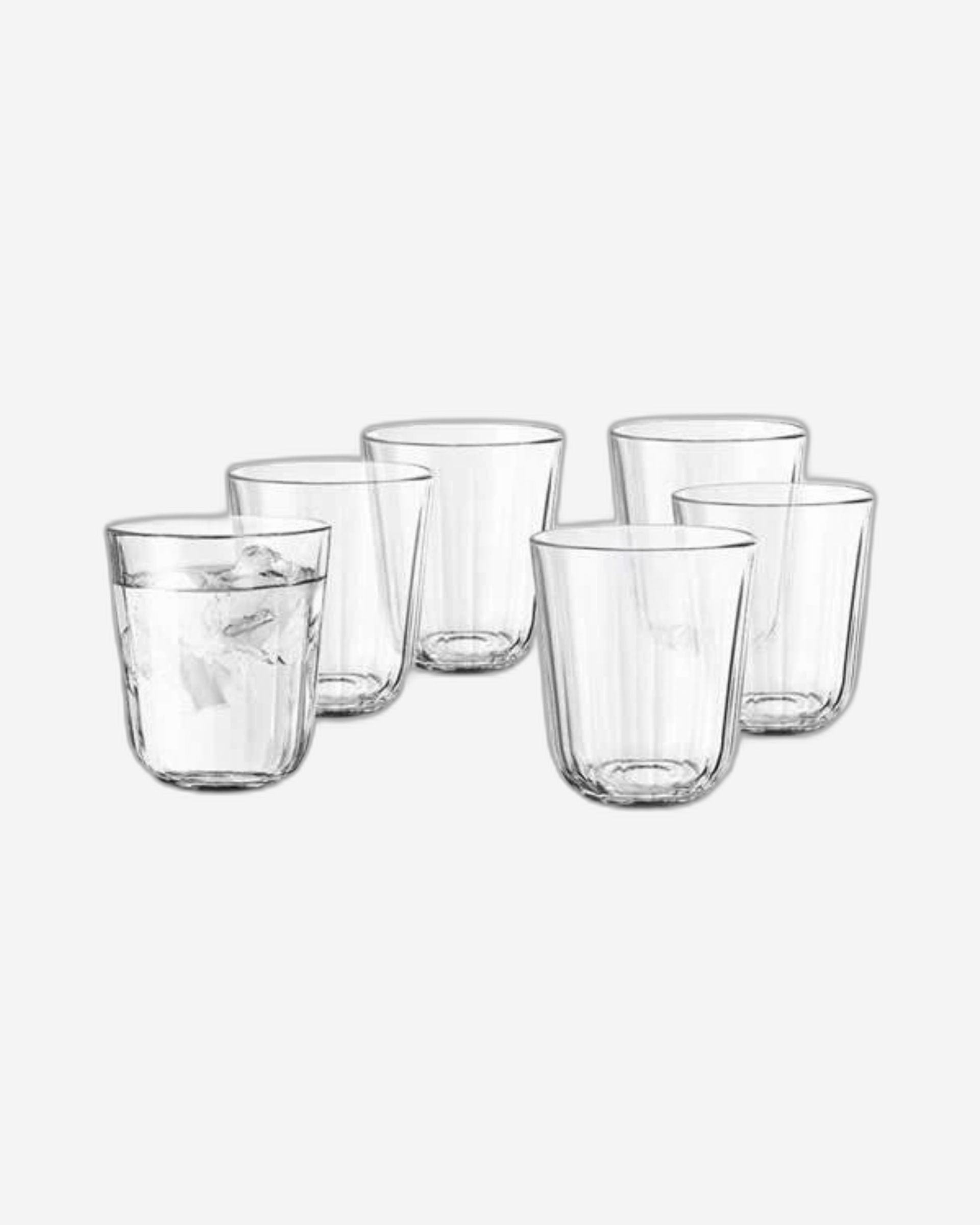 أكواب إيفا سولو 567433 ذات الأوجه هي مجموعة من ستة أكواب شرب أنيقة ذات أوجه، سعة كل منها 27 سنتيلترًا (270 مل). مصنوعة من زجاج مقسّى (مقوى)، وتتميز بقاعدة ذات أوجه مميزة تعكس الضوء بشكل رائع. تُتيح استخدامًا متعدد الاستخدامات للمشروبات الساخنة والباردة في المناسبات اليومية أو عند استضافة الضيوف، حيث تجمع بين التصميم الاسكندنافي والعملية.
