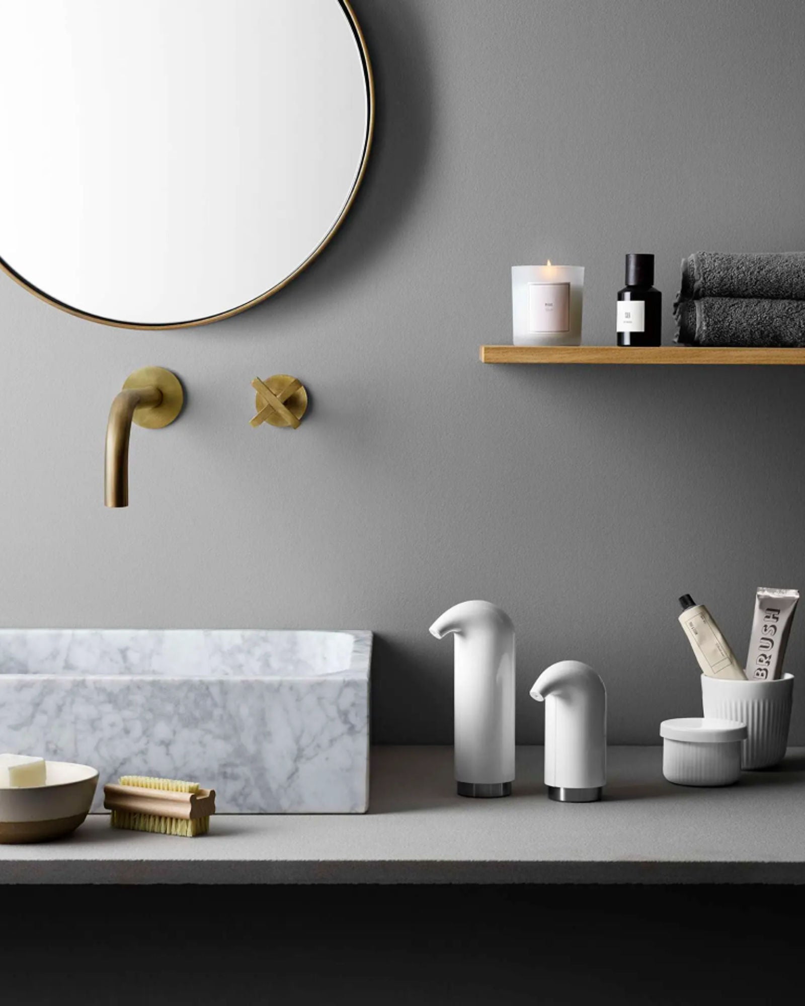 موزع الصابون إيفا سولو 567892 باللون الأبيض هو قطعة أنيقة بتصميم دنماركي بسيط، تجمع بين الرقي والعملية في حمامك أو مطبخك. صُمم هذا الموزع من قِبل شركة Tools® لصالح إيفا سولو، ويتميز بآلية ضخ مخفية وشكل انسيابي بدون حواف، مما يجعله سهل الاستخدام والتنظيف.