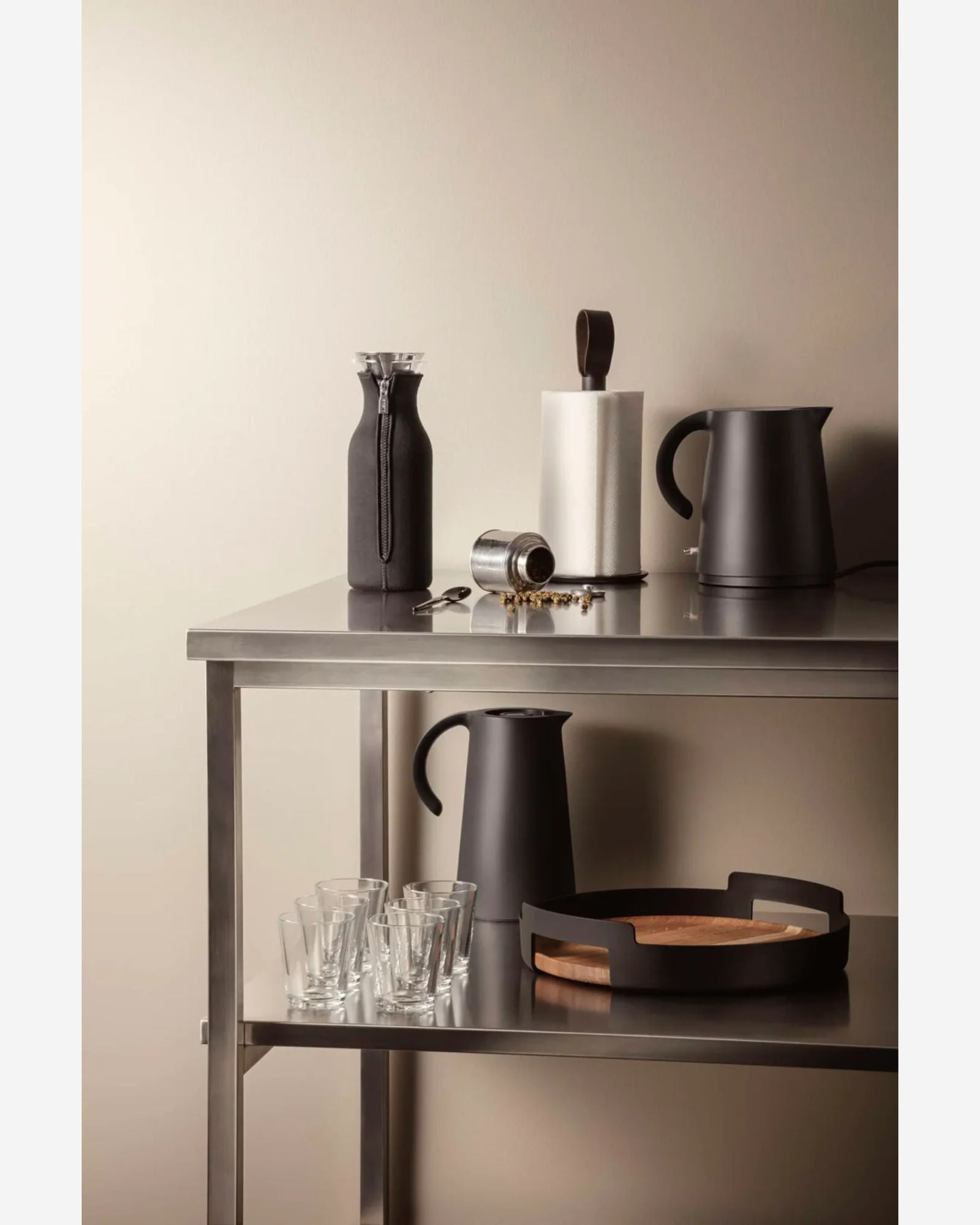 إبريق الثلاجة إيفا سولو 567972 سعة 1 لتر باللون الأسود المنسوج، إضافة أنيقة وعملية لأي مطبخ أو غرفة طعام. صُمم هذا الإبريق من قِبل شركة Tools® Design لصالح العلامة التجارية الدنماركية إيفا سولو، ويجمع بين الجمال والعملية.