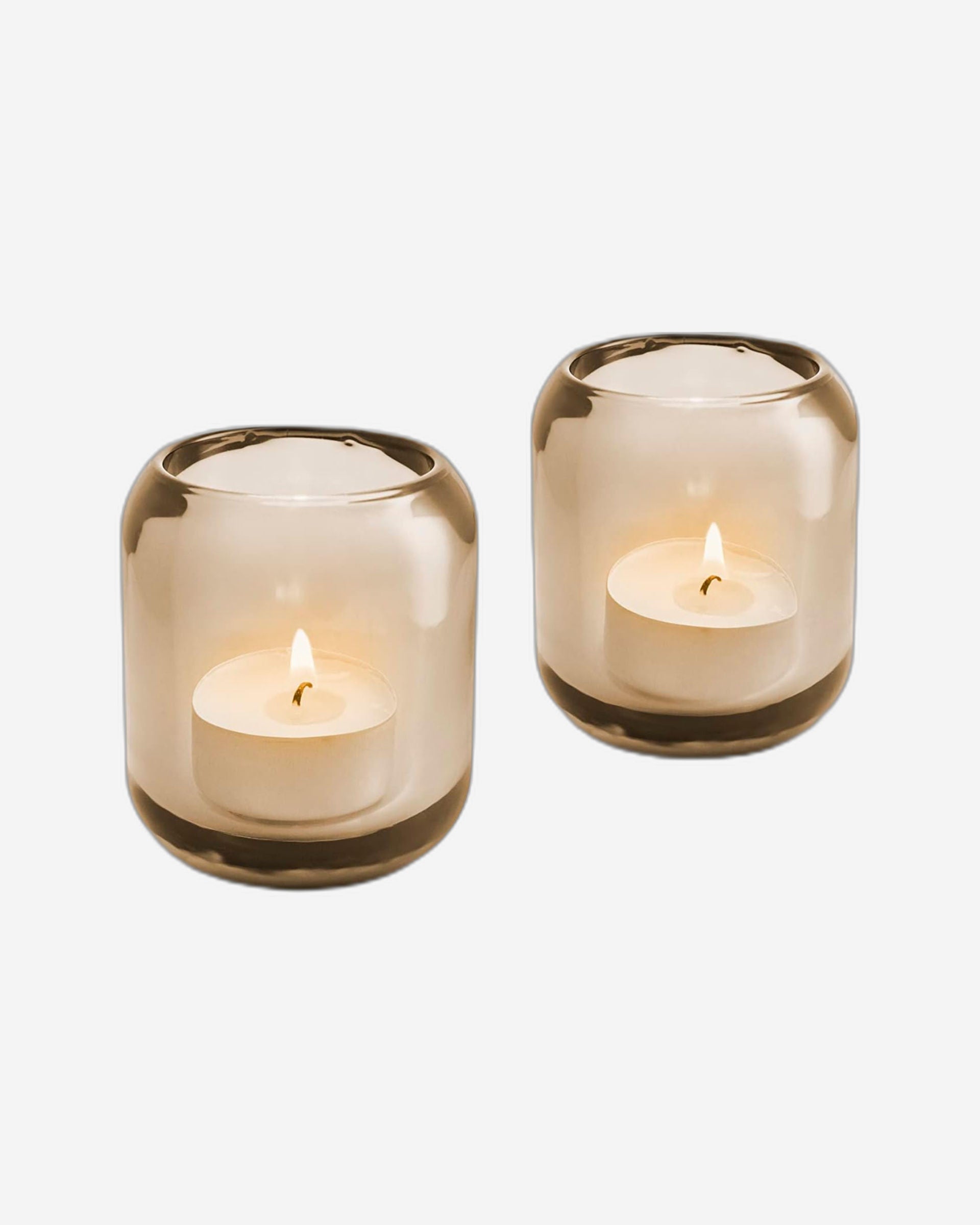تتميز مجموعة حاملات شموع البلوط الصغيرة بحاملات زجاجية ناعمة الشكل بلون بني دافئ، مستوحاة من شكل البلوط الطبيعي. تضفي هذه الحوامل لمسة من الدفء والراحة على منزلك، سواءً وضعت كل حامل على حدة أو معاً. كما أنها آمنة للاستخدام في غسالة الأطباق، مما يجعلها أنيقة وعملية في آن واحد.