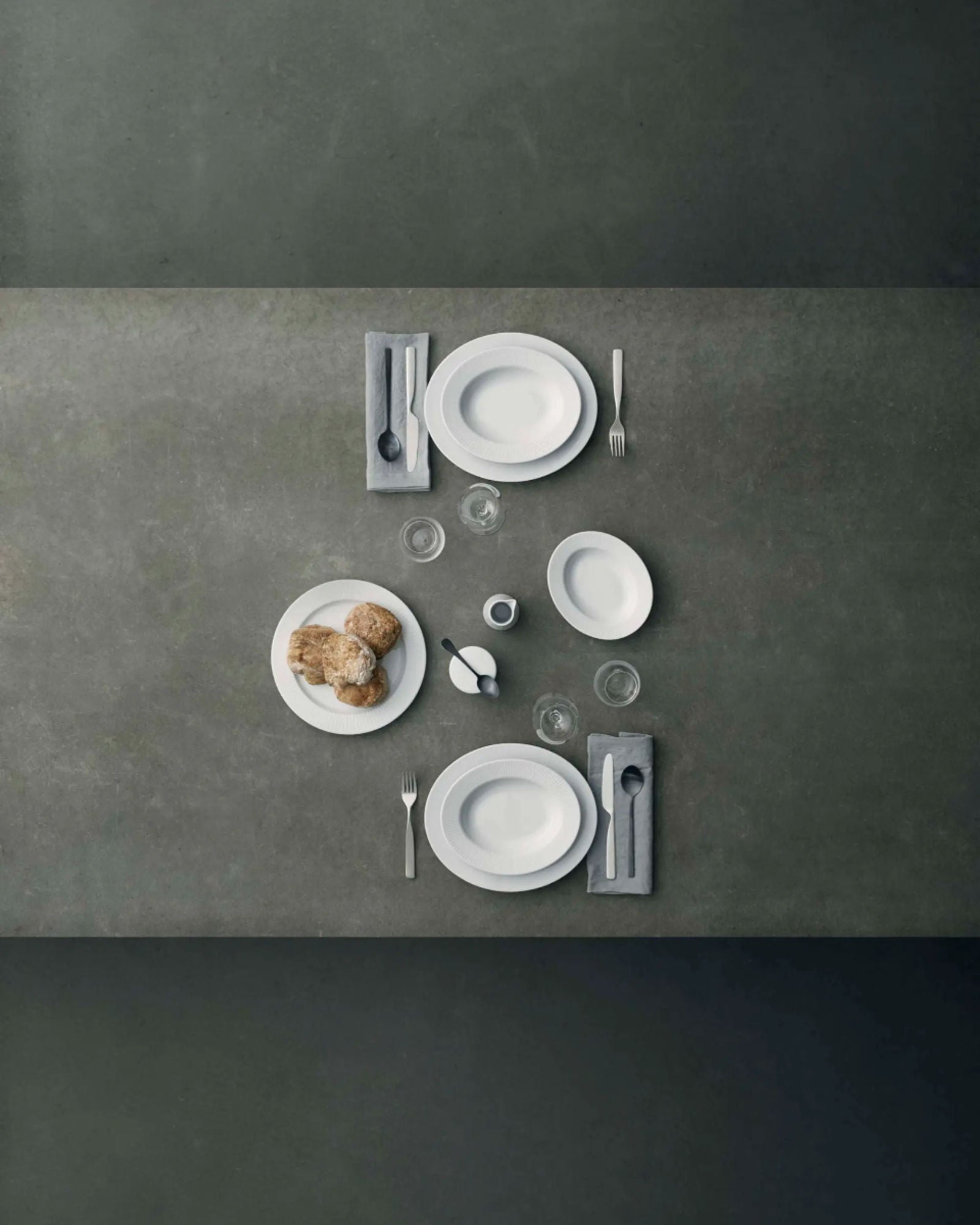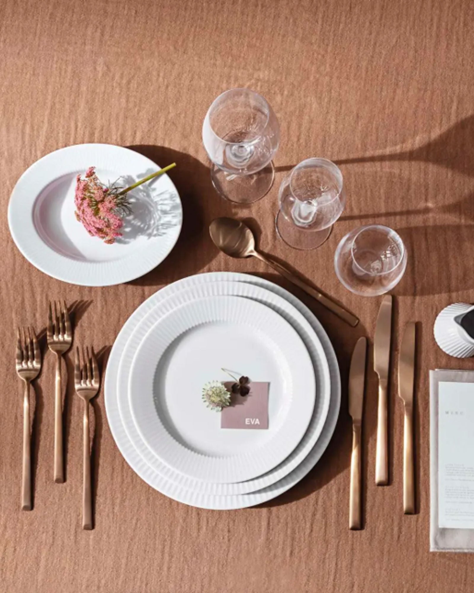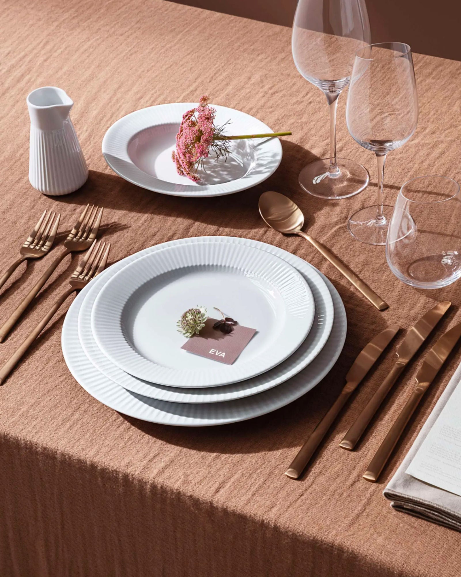 •يكمل الخزف الأبيض النظيف كلاً من تنسيقات المائدة الحديثة والتقليدية.