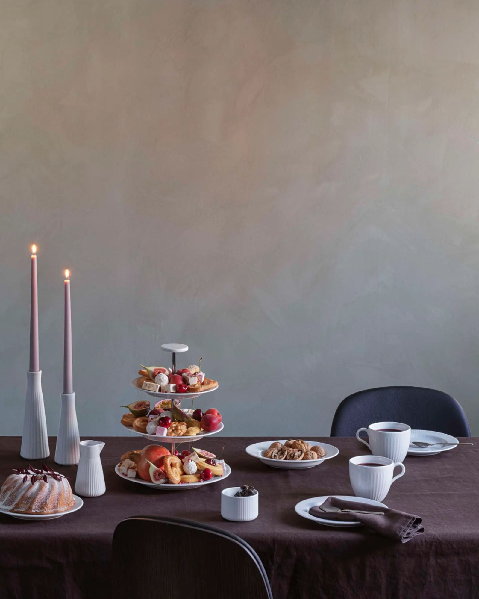 •يكمل الخزف الأبيض النظيف كلاً من تنسيقات المائدة الحديثة والتقليدية.