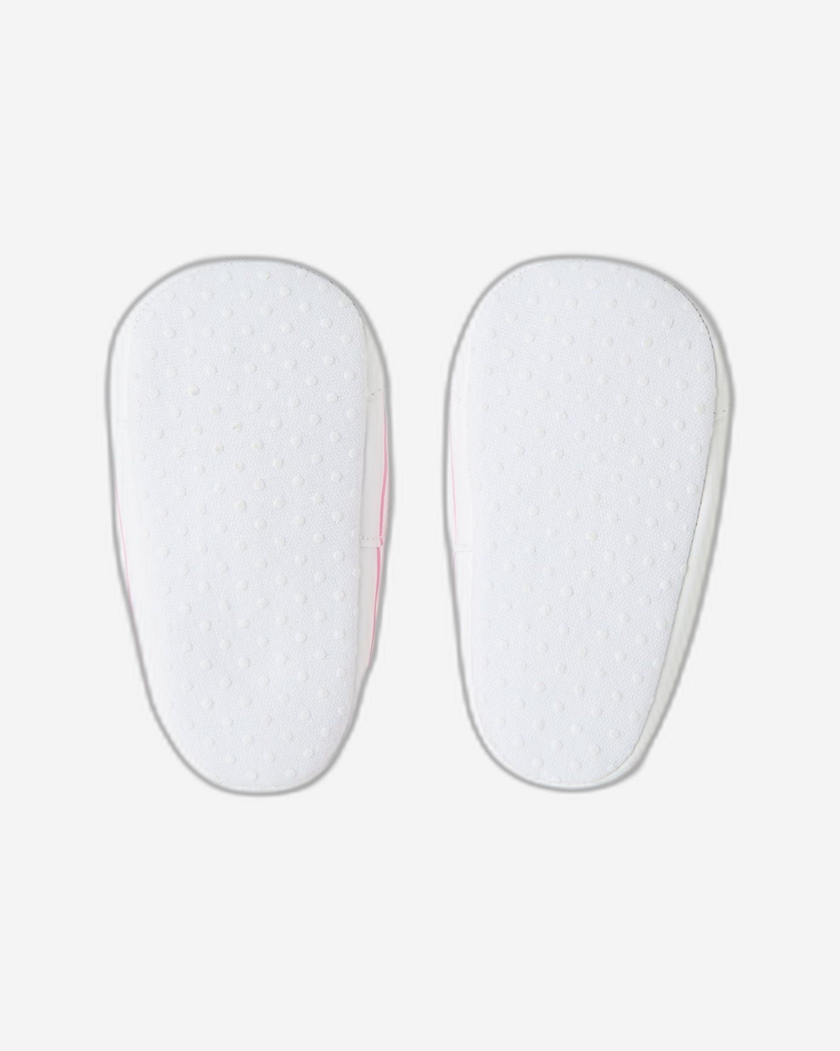 حذاء رياضي مريح بدون أربطة، بجزء علوي من قماش قطني ممزوج. مطاط داخلي لضمان ملاءمة آمنة وسريعة، ونعل قماشي مانع للانزلاق. مثالي لخطواتها الأولى.