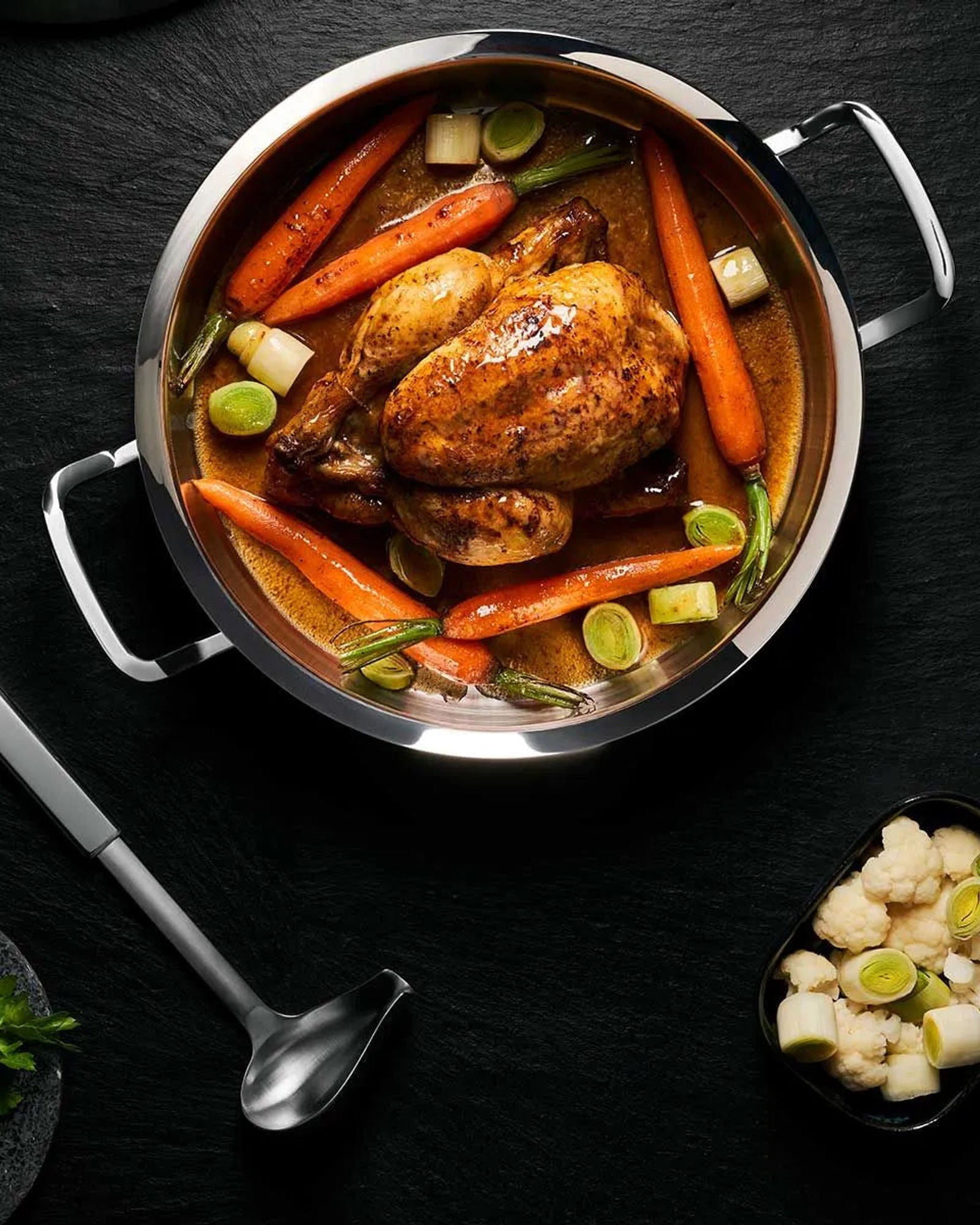 • وعاء طهي منخفض مثالي للقلي والطهي على نار هادئة بكميات صغيرة إلى متوسطة مع سائل تحت غطاء مغلق