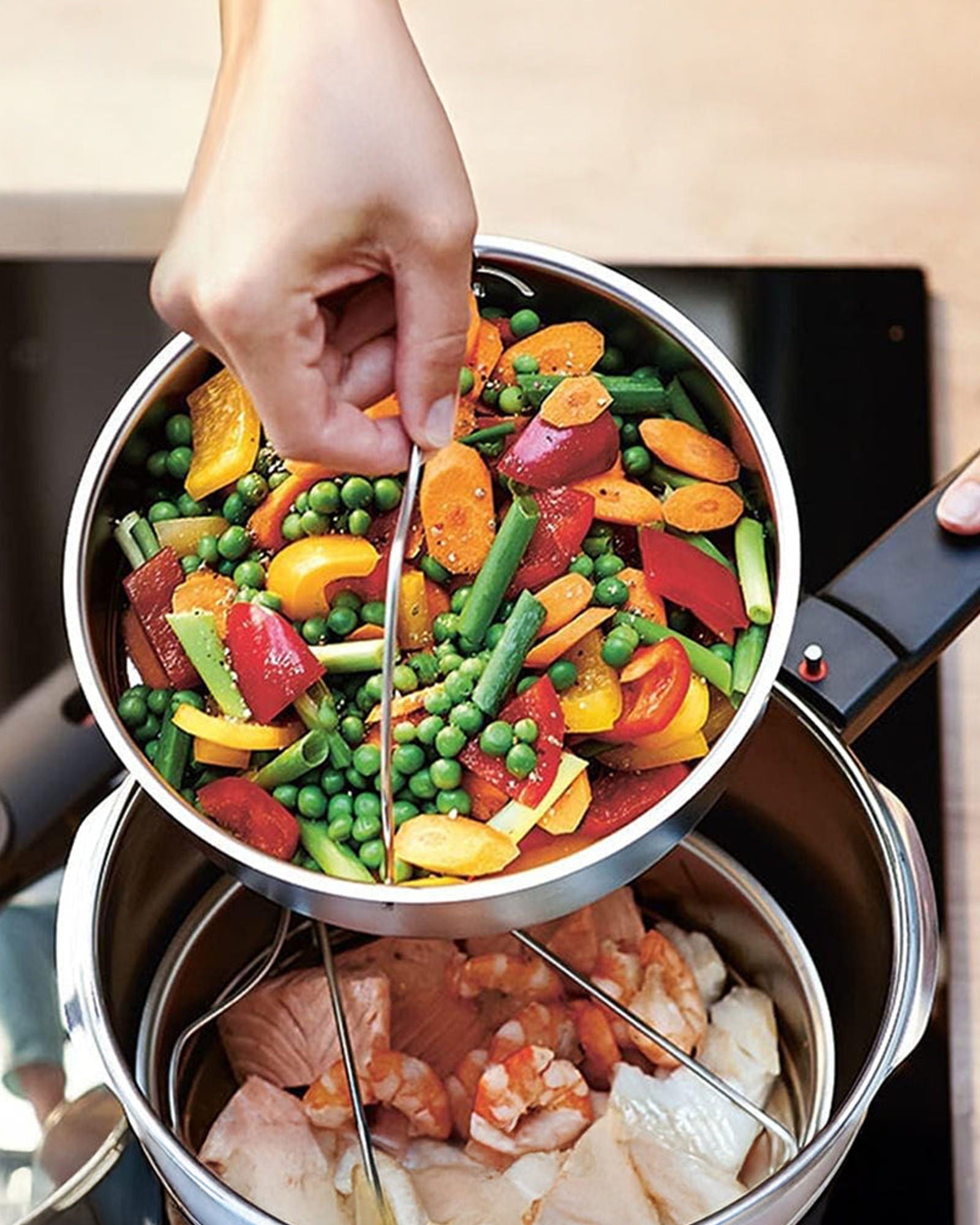 • يسمح الملحق بالتحضير المتزامن للأطباق الرئيسية أو الأطباق الجانبية أو الحلويات