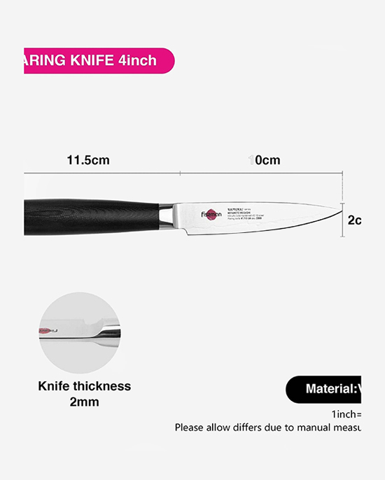 سكين تقشير فيسمان ساموراي موساشي، 4 بوصات، 10 سم (فولاذ دمشقي)