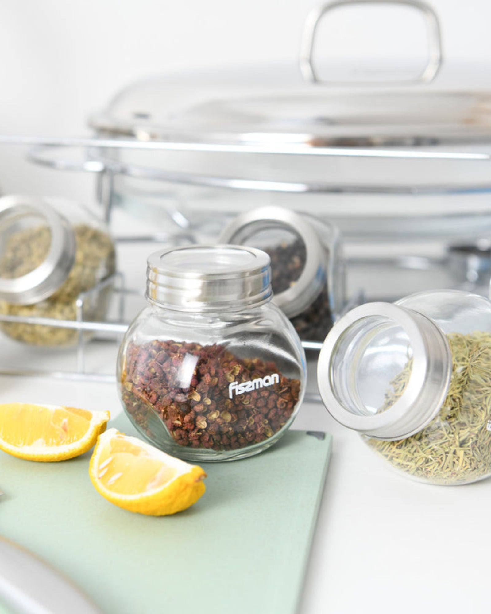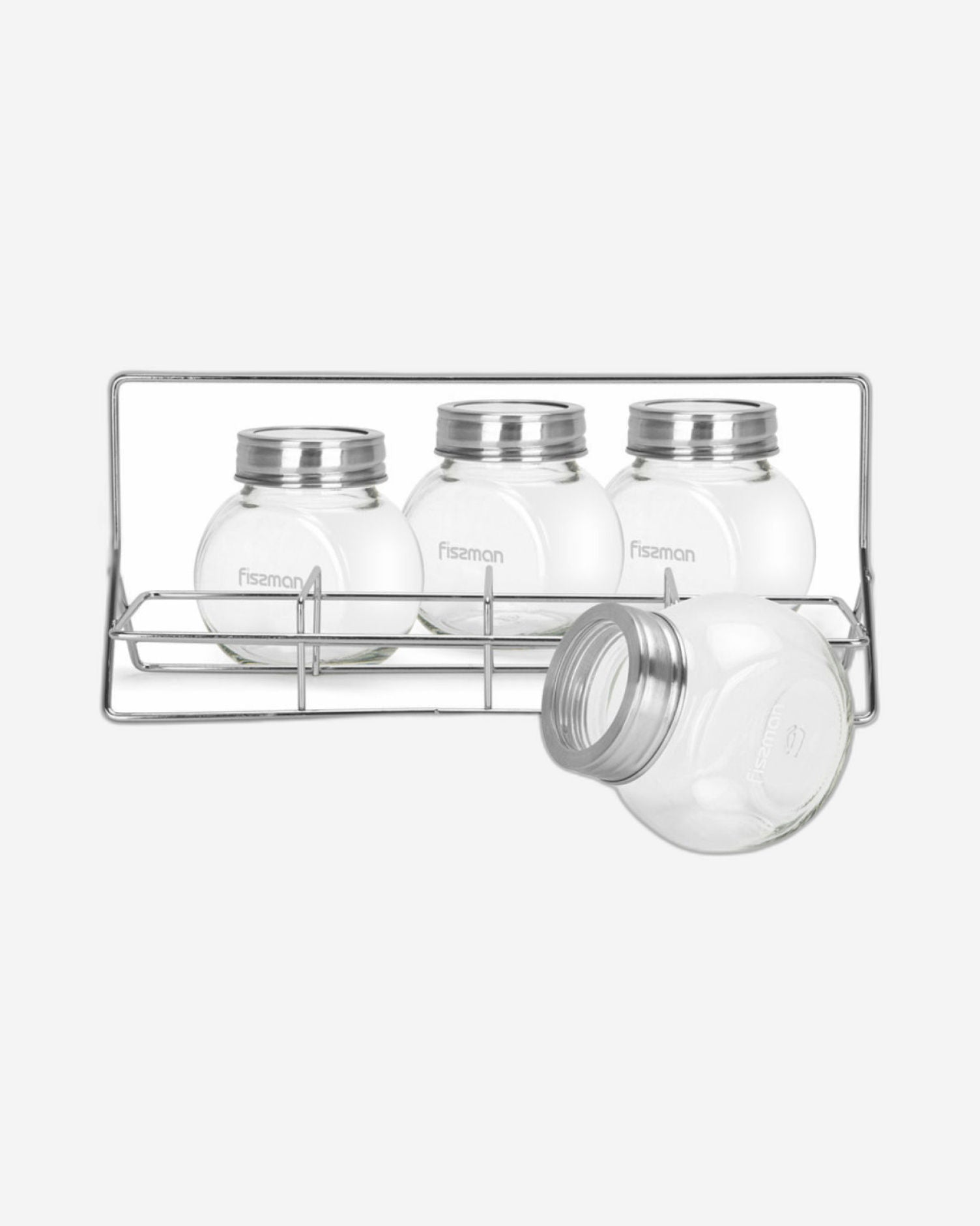 طقم توابل زجاجي من فيسمان، 4 قطع، سعة 195 مل، مع منظم رفوف