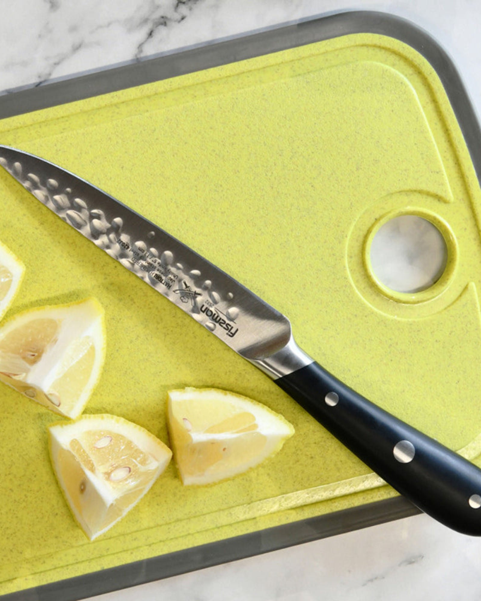 سكين فيسمان هاتوري العالمي بطول 13 سم أداة أساسية في كل مطبخ. صُممت لتتسم بالمرونة، وهي مثالية لتقطيع اللحوم، أو تقطيع الخضراوات، أو فرم الأعشاب. تتميز شفرتها بلمسة نهائية مميزة تُقلل الاحتكاك وتمنع التصاق الطعام، مما يضمن تقطيعًا سلسًا ودقيقًا في كل مرة.