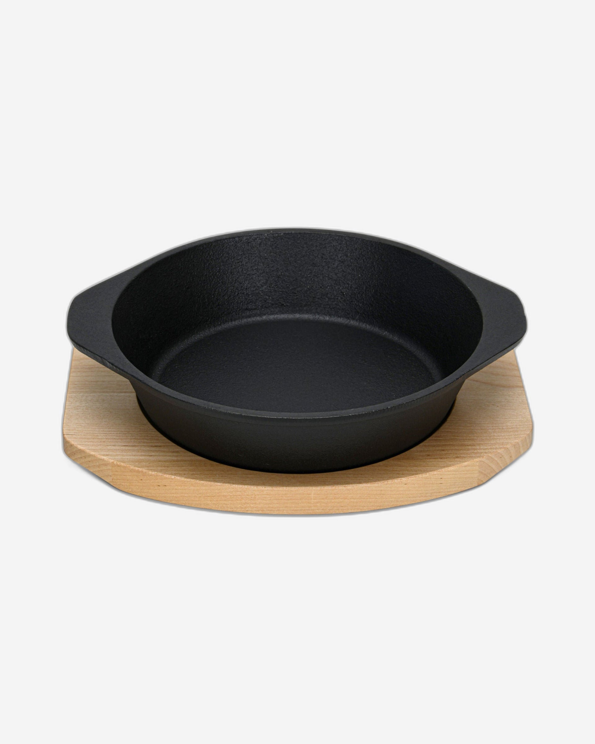 مقلاة فيسمان المصنوعة من الحديد الزهر بمقبضين جانبيين وصينية خشبية