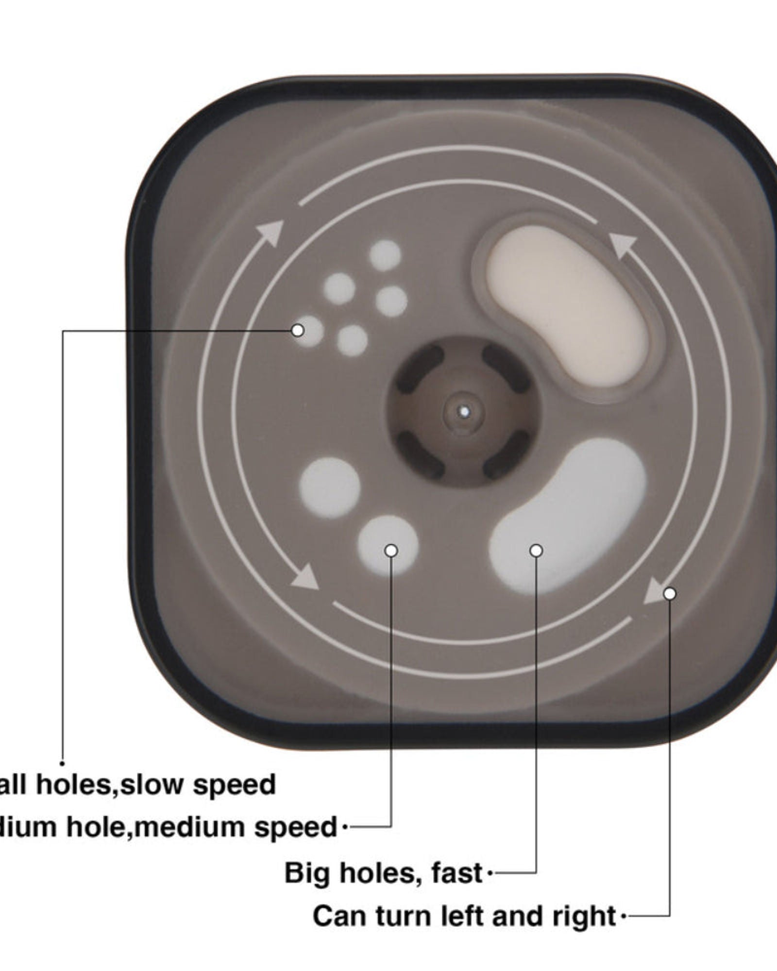 • يحتوي موزع الغطاء على ثلاثة أنواع من الثقوب لتوزيع التوابل