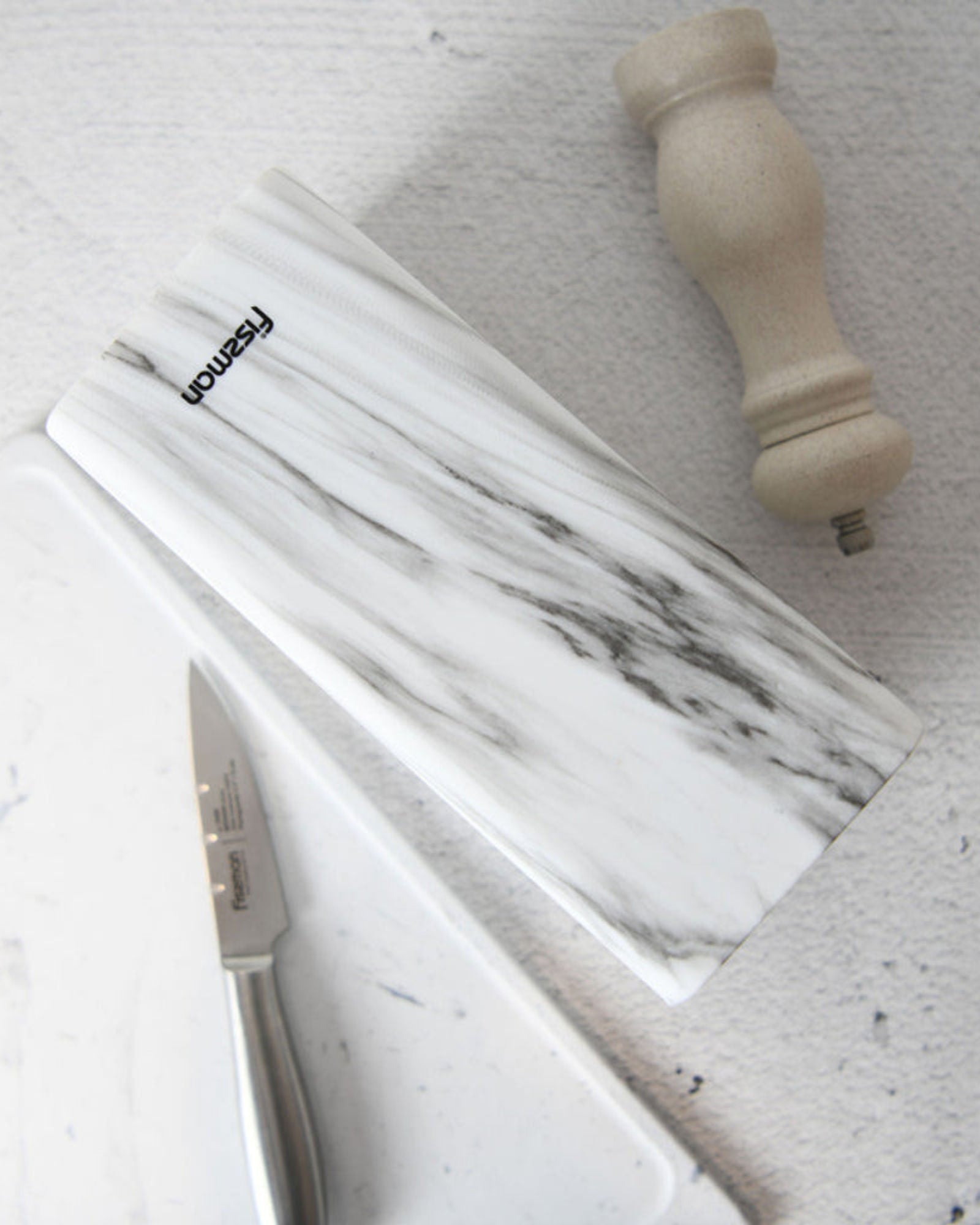 * نظام تخزين مبتكر: يتميز حامل السكاكين من FISSMAN بوجود ملحق شعيرات يحمل السكاكين من أي حجم بشكل آمن دون إتلاف الشفرات.