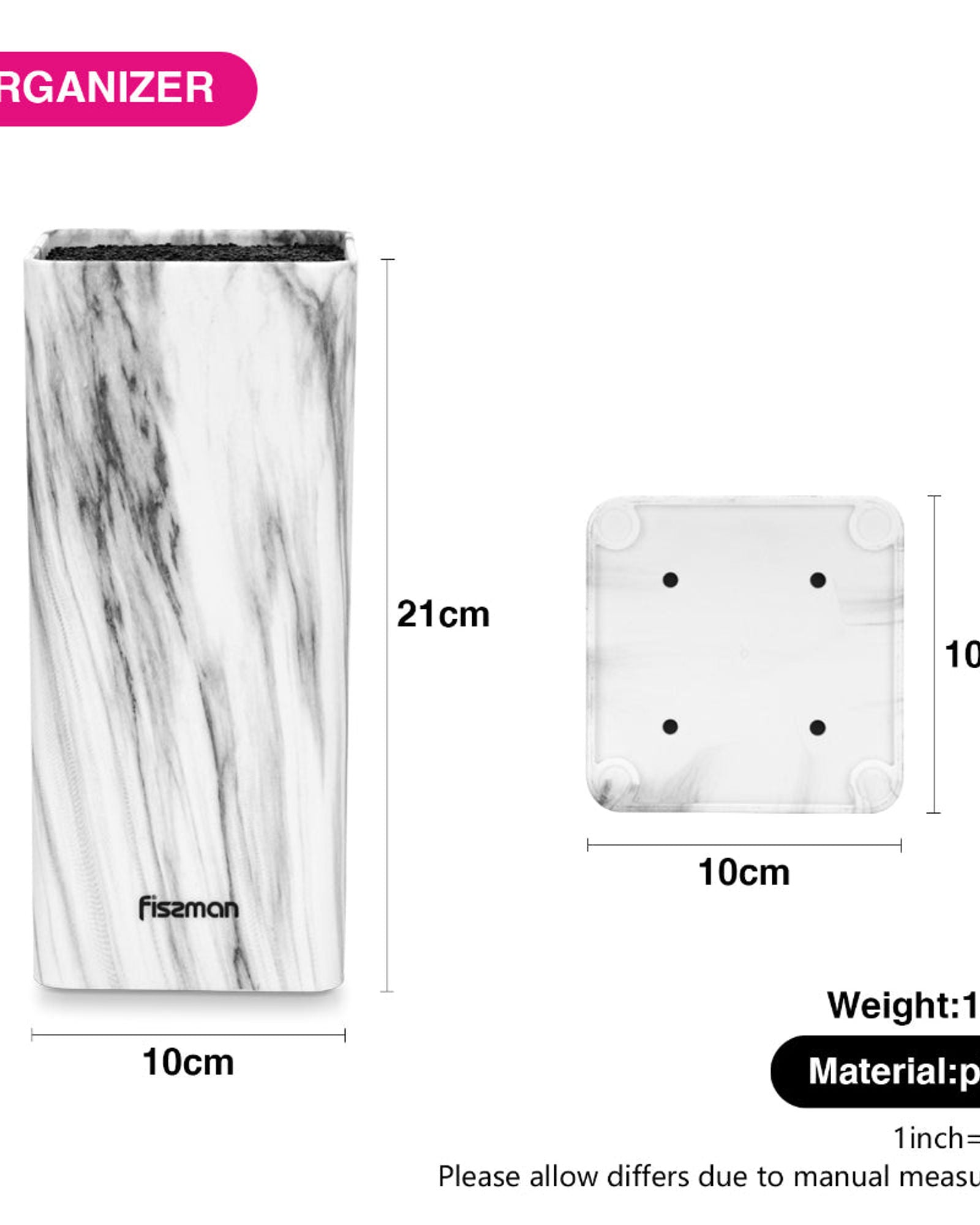 * متعدد الاستخدامات وصغير الحجم: يمكن لهذا الحامل أن يحمل أنواعًا مختلفة من السكاكين، من سكاكين الخضروات الصغيرة إلى سكاكين الطهاة الكبيرة، كل ذلك ضمن تصميمه الصغير الذي يبلغ 22 سم.