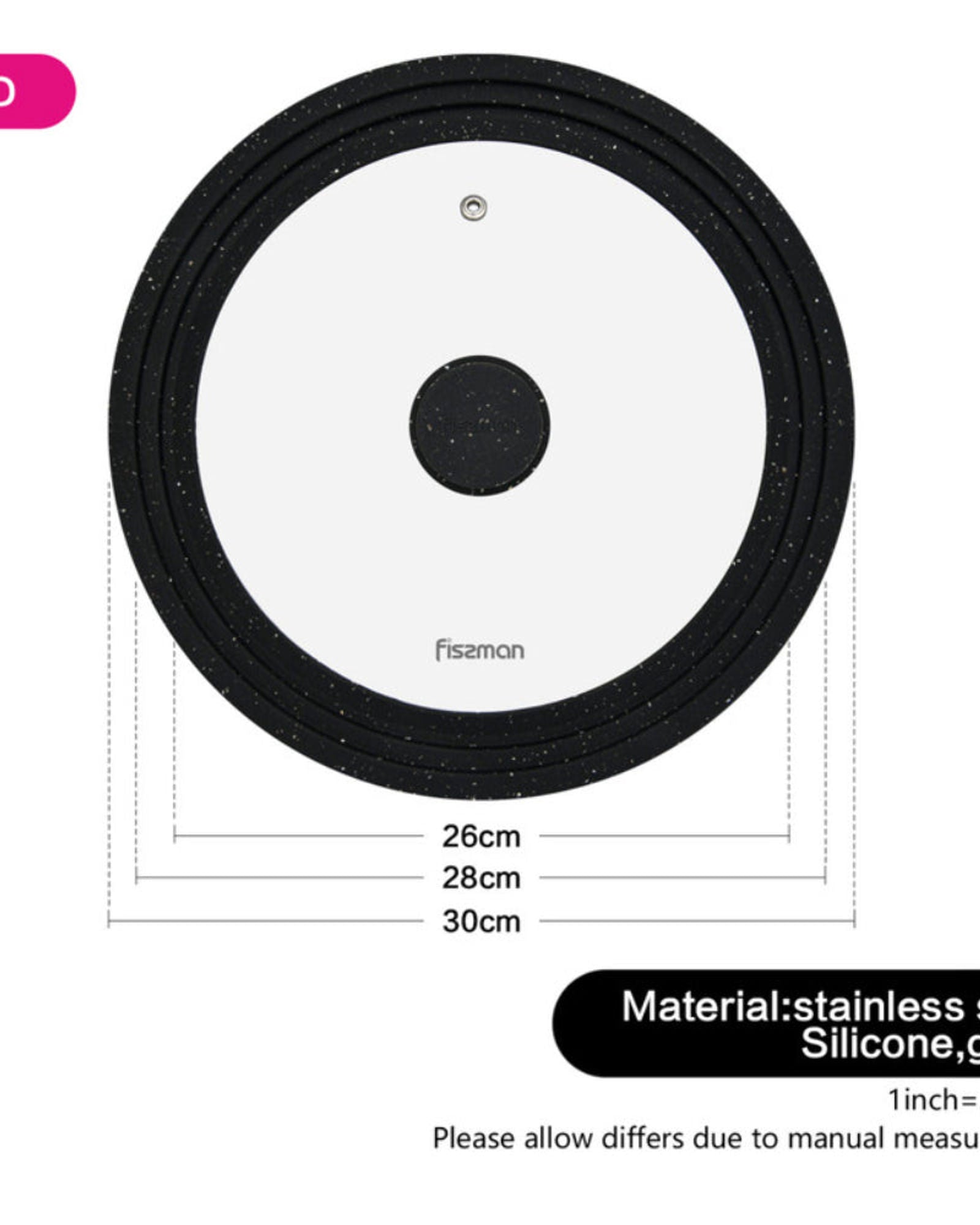 غطاء فيسمان متعدد الأحجام شفاف/أسود 26/28/30 سم