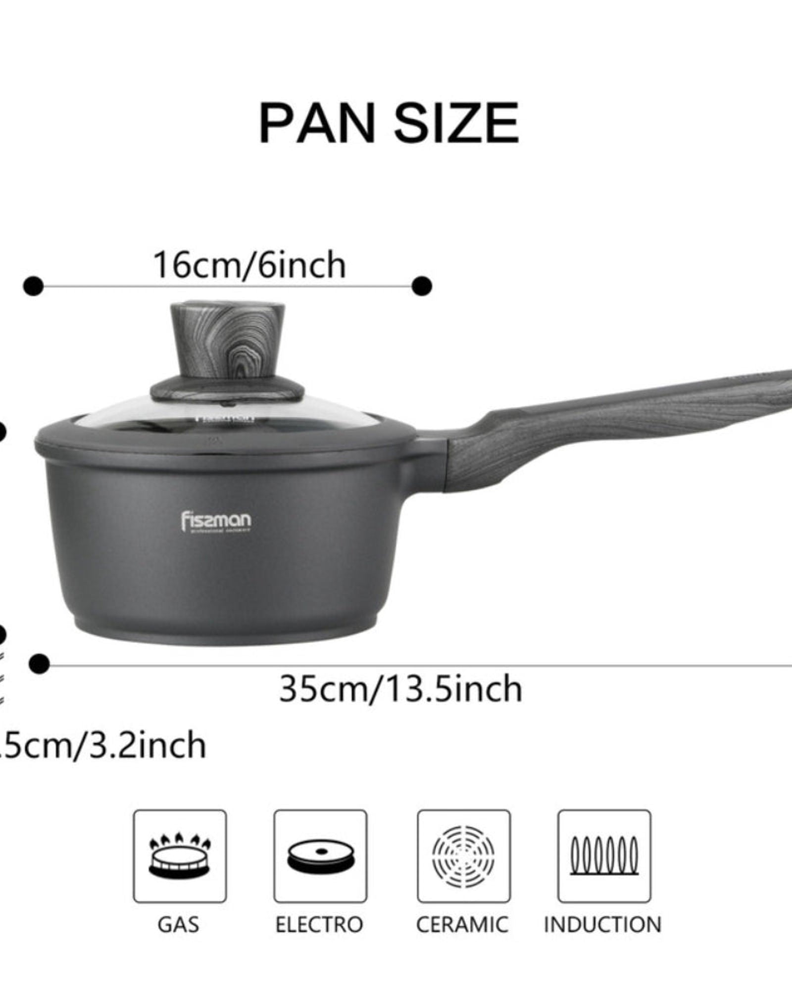 مقلاة صلصة فيسمان مع غطاء رمادي 16×8.5 سم/1.4 لتر من الألومنيوم مع قاعدة حثية وطلاء غير لاصق من سلسلة بريستيج