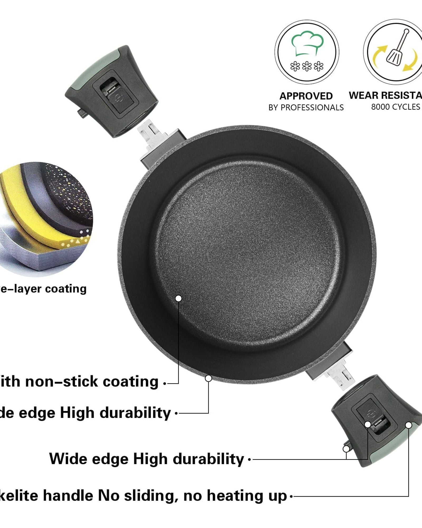 • مصمم بأدق التفاصيل: لون رمادي زيتوني فريد من نوعه على السطح الخارجي، وسطح خارجي أصلي بنمط رسومي ثلاثي الأبعاد، بالإضافة إلى مقابض الباكليت الأنيقة القابلة للإزالة مع حشوات السيليكون، مما يلبي احتياجات المشترين الأكثر تطوراً وحداثة.