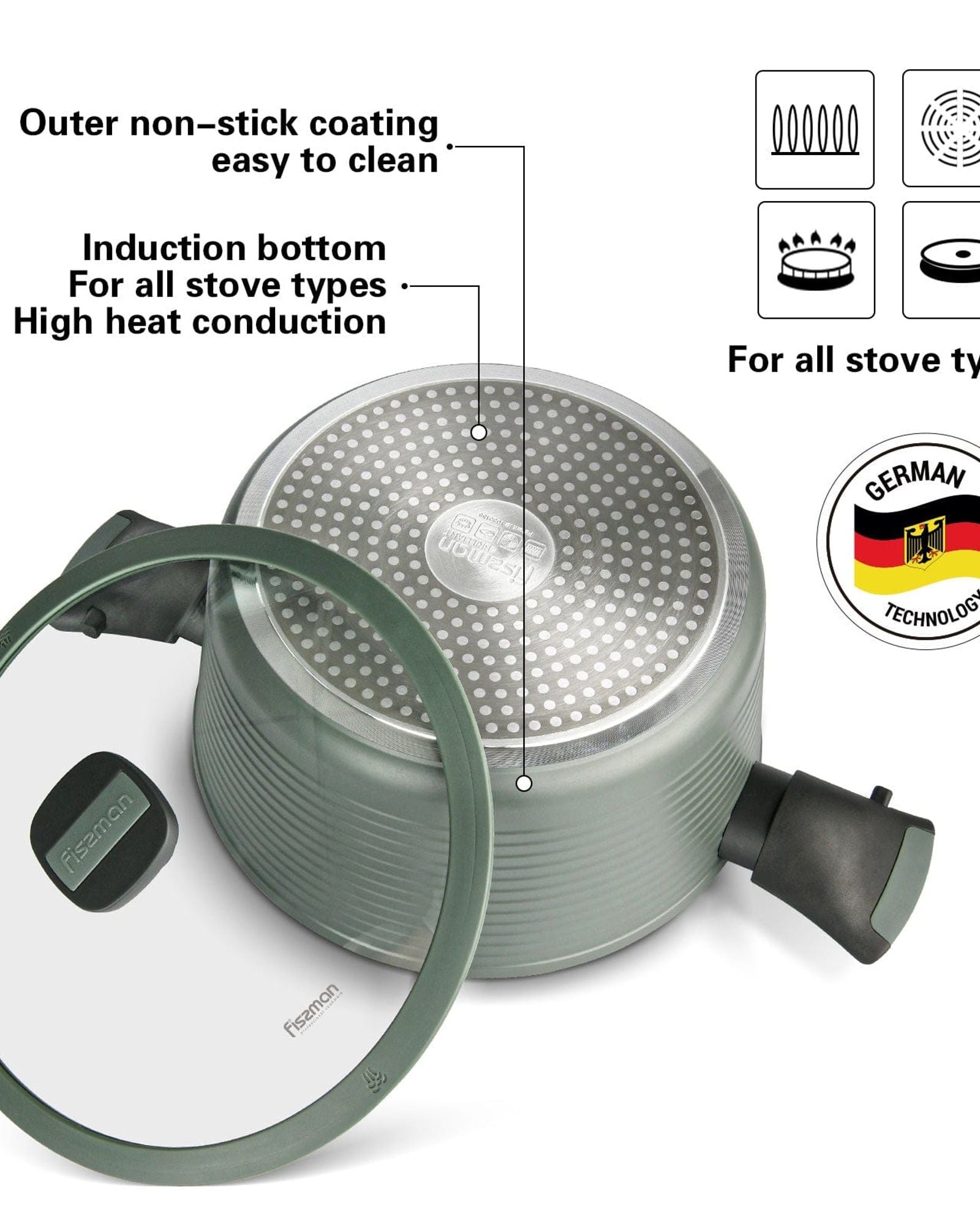 قدر فيسمان مع مقبض سفلي قابل للفصل يعمل بالحث الحراري وغطاء زجاجي 24 × 12 سم/4.5 لتر، أخضر