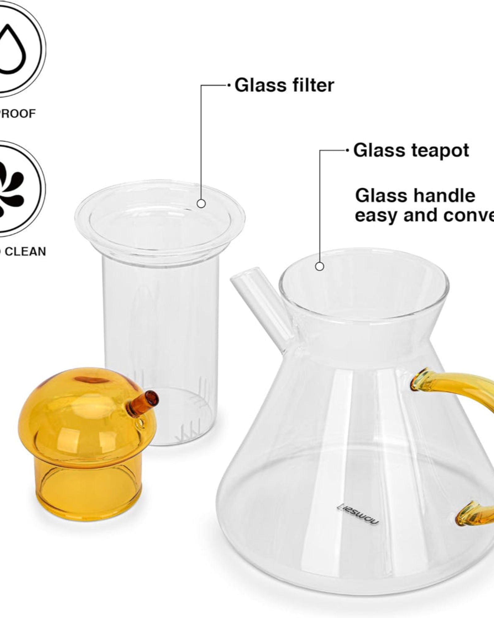 * لا يمتص الروائح - الزجاج لا يحتفظ بأي روائح، ليبقى شايكم دائمًا طازجًا ونقيًا. أنيق وعصري - تصميم جميل يجعل وقت الشاي أكثر تميزًا ويضفي لمسة جمالية على أي طاولة.