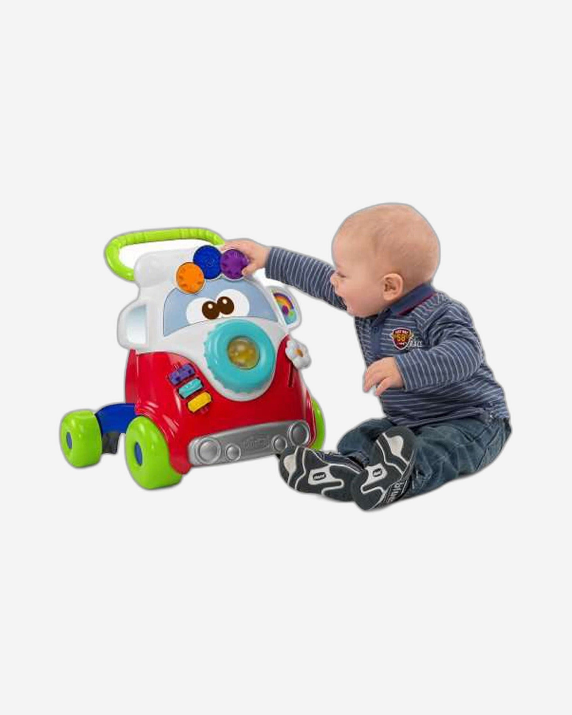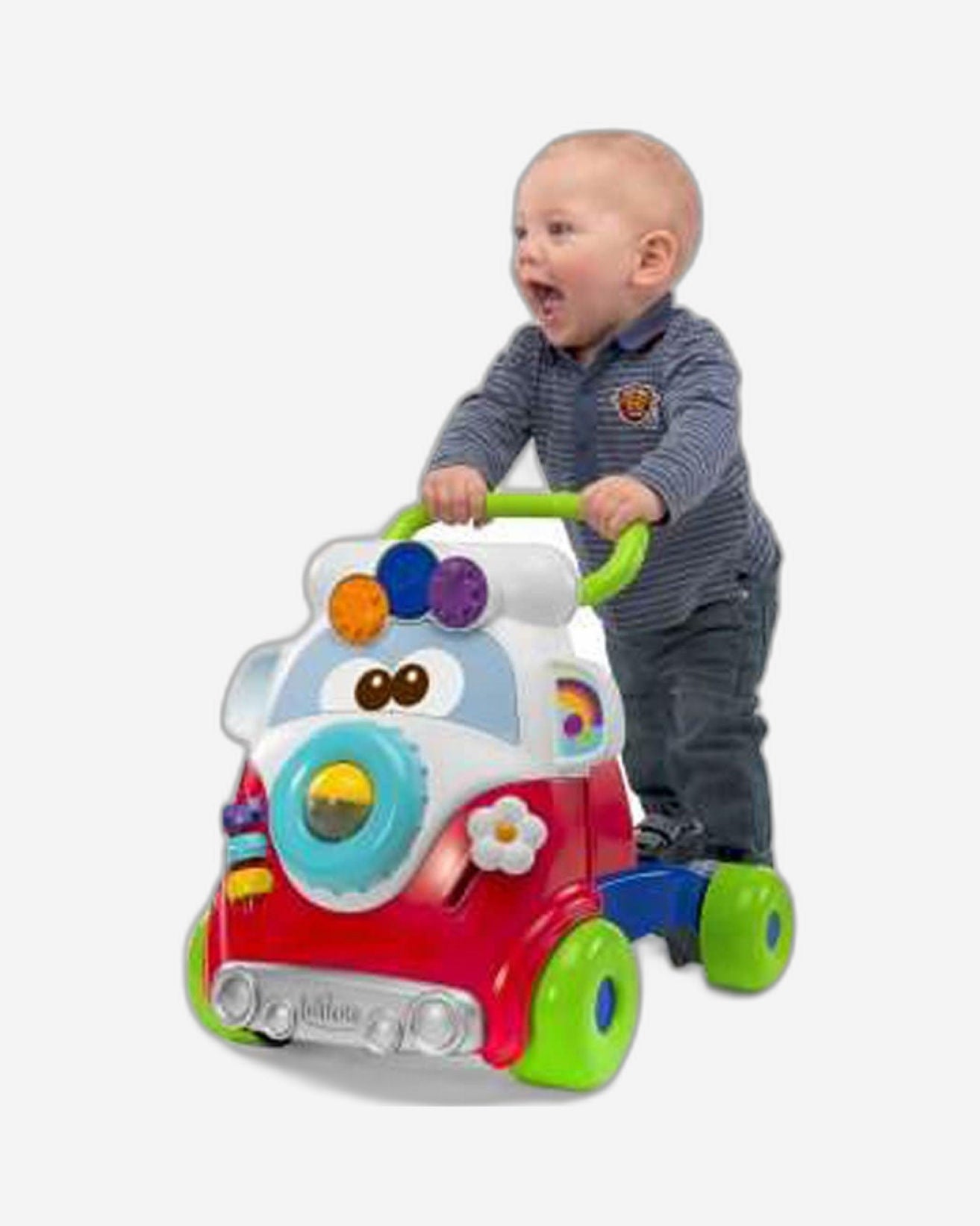 1. الخطوات الأولى: تساعد الطفل على اكتساب التوازن واتخاذ خطواته الأولى بأمان، وذلك بفضل العجلات الأربع الكبيرة التي تمنحه ثباتًا كبيرًا