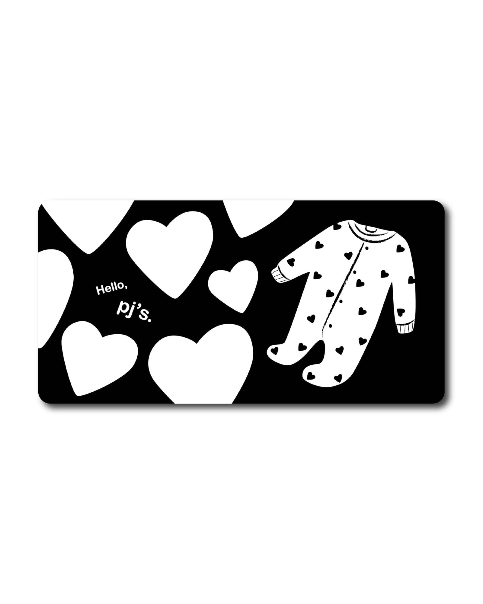 عندما يولد الأطفال، لا يستطيعون التمييز بين الألوان كما يفعل الأطفال الأكبر سنًا. لكن الدراسات تُظهر أن الأطفال يستطيعون رؤية الأشكال والأنماط عالية التباين بالأبيض والأسود منذ الأيام الأولى من حياتهم، وهذا التعريف الرائع بالأشياء البسيطة الموجودة في غرفة نوم الطفل، إلى جانب نصوص سهلة الفهم وأنماط بسيطة وجريئة، يُوفر تجربة تباين عالية مهمة لعيون الطفل النامية.