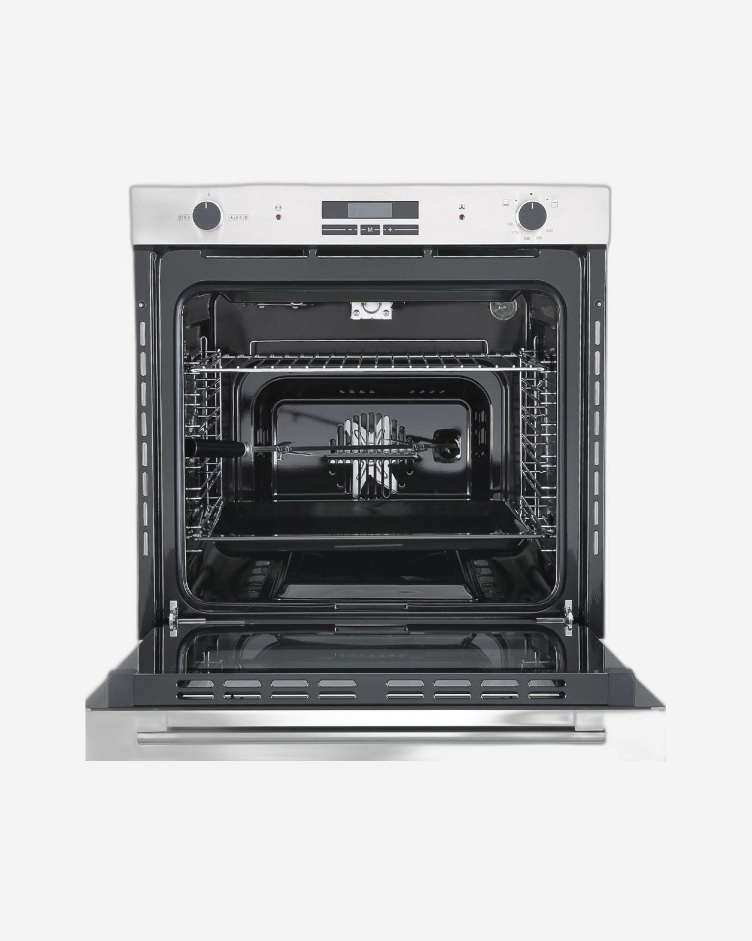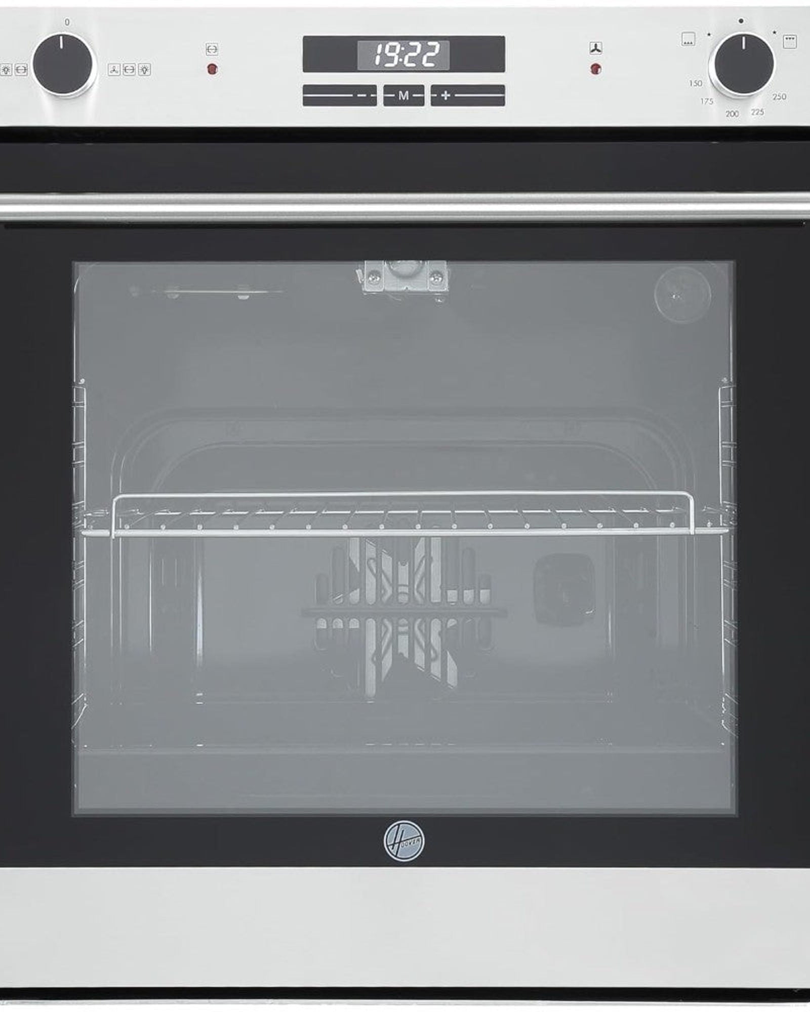 فرن غاز مدمج من هوفر، مقاس 60 سم، سعة 90 لترًا، مروحة حرارية، شواية دوارة، مؤقت رقمي، تحكم باللمس، صمام غاز أوروبي، طبقات زجاجية ثلاثية، يتضمن رفوفًا وملحقات - HGO-T6090-BBI
