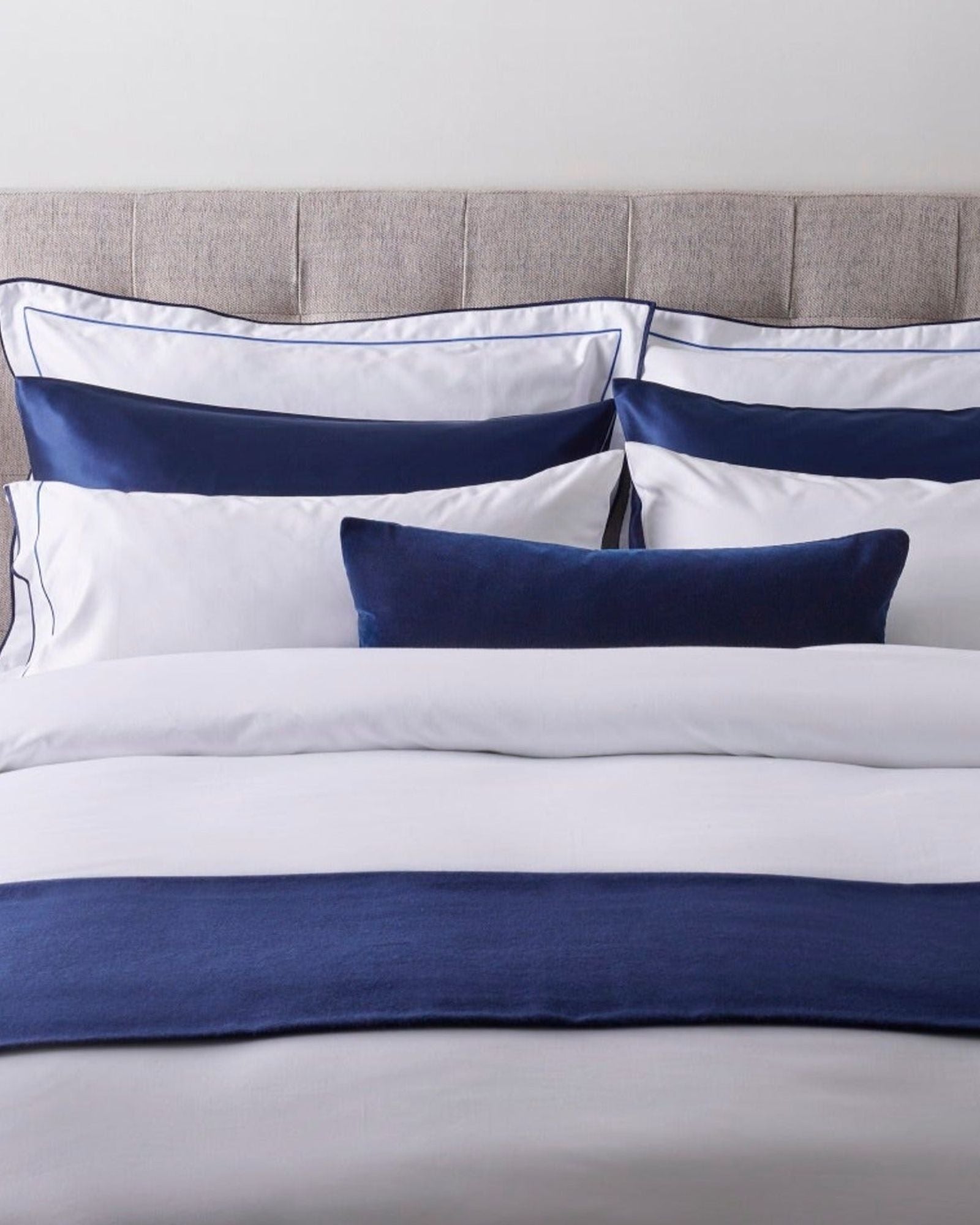 هذه الطريقة الفريدة لنسج الساتان، التي تتضمن أربعة خيوط علوية وخيطًا سفليًا، تُبرز بوضوح الخيوط على الجانب العلوي، مما يُنتج قماشًا جميلًا متوسط الوزن بنعومة ساتان غنية. كل قطعة مُصممة بلمسة نهائية أنيقة مع حواف أنيقة على حافة أكسفورد ضيقة عصرية باللون الأزرق.