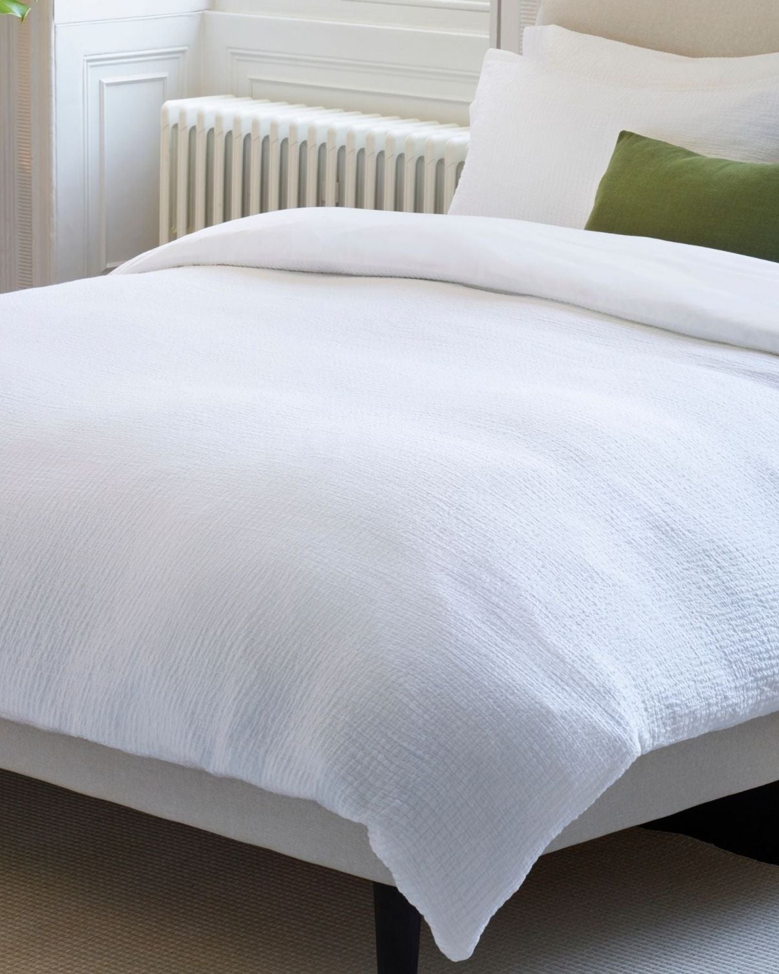 مجموعة "النسيج المزدوج" مصنوعة من قطن ممشط 100% باستخدام أجود الخيوط، وهي مضادة للحساسية بطبيعتها وجيدة التهوية، مما يجعلها مناسبة للاستخدام على مدار العام. يُصنع القماش على نول دوبي، مما يُنتج أنماطًا هندسية صغيرة وملمسًا جذابًا. تتميز المجموعة بملمس فريد ومجعد، ناعم وسهل العناية، مع قماش بيركال ناعم على البشرة. تشمل المجموعة أطقم أغطية لحاف مع أغطية وسائد قياسية وأغطية وسائد قياسية فردية. صُممت المجموعة لتوفير شعور بالهدوء والاسترخاء.