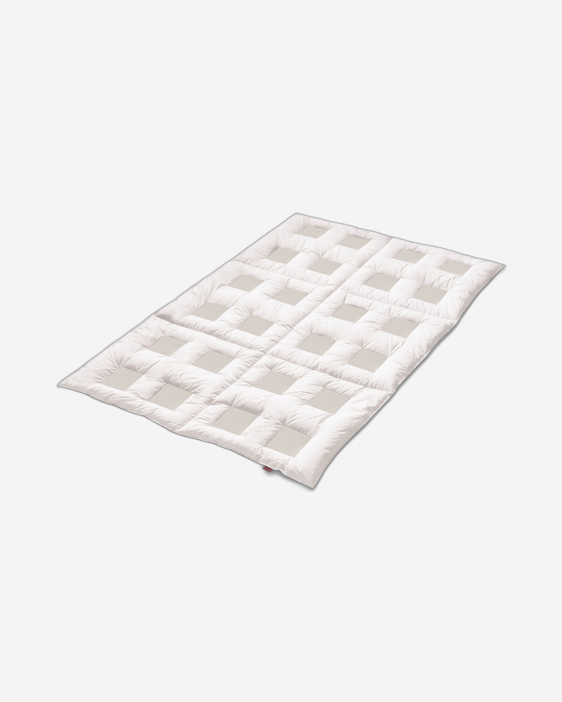 لحاف بخياطة مربعة ليبقى الزغب ثابتًا في مكانه. مخيط بحواف مزدوجة الدرزات ولمسة نهائية فائقة النعومة.