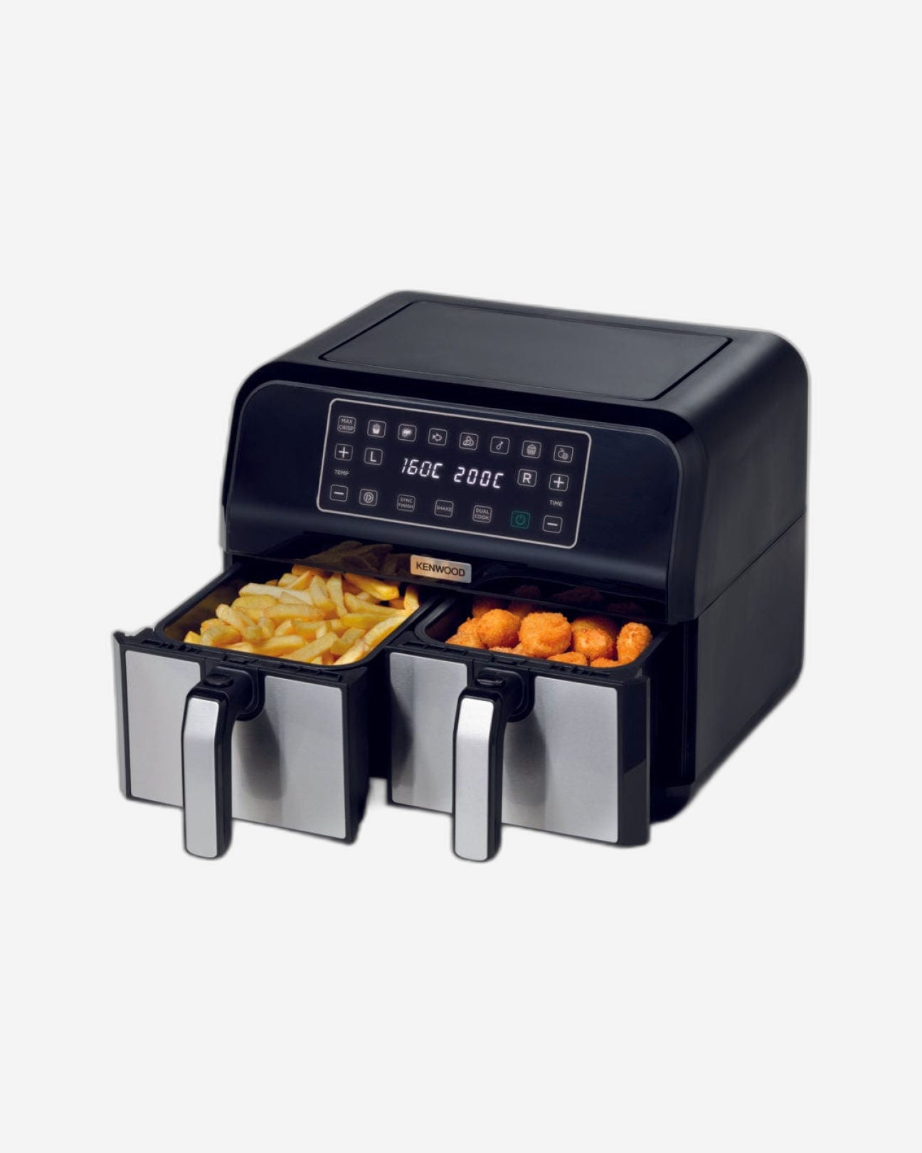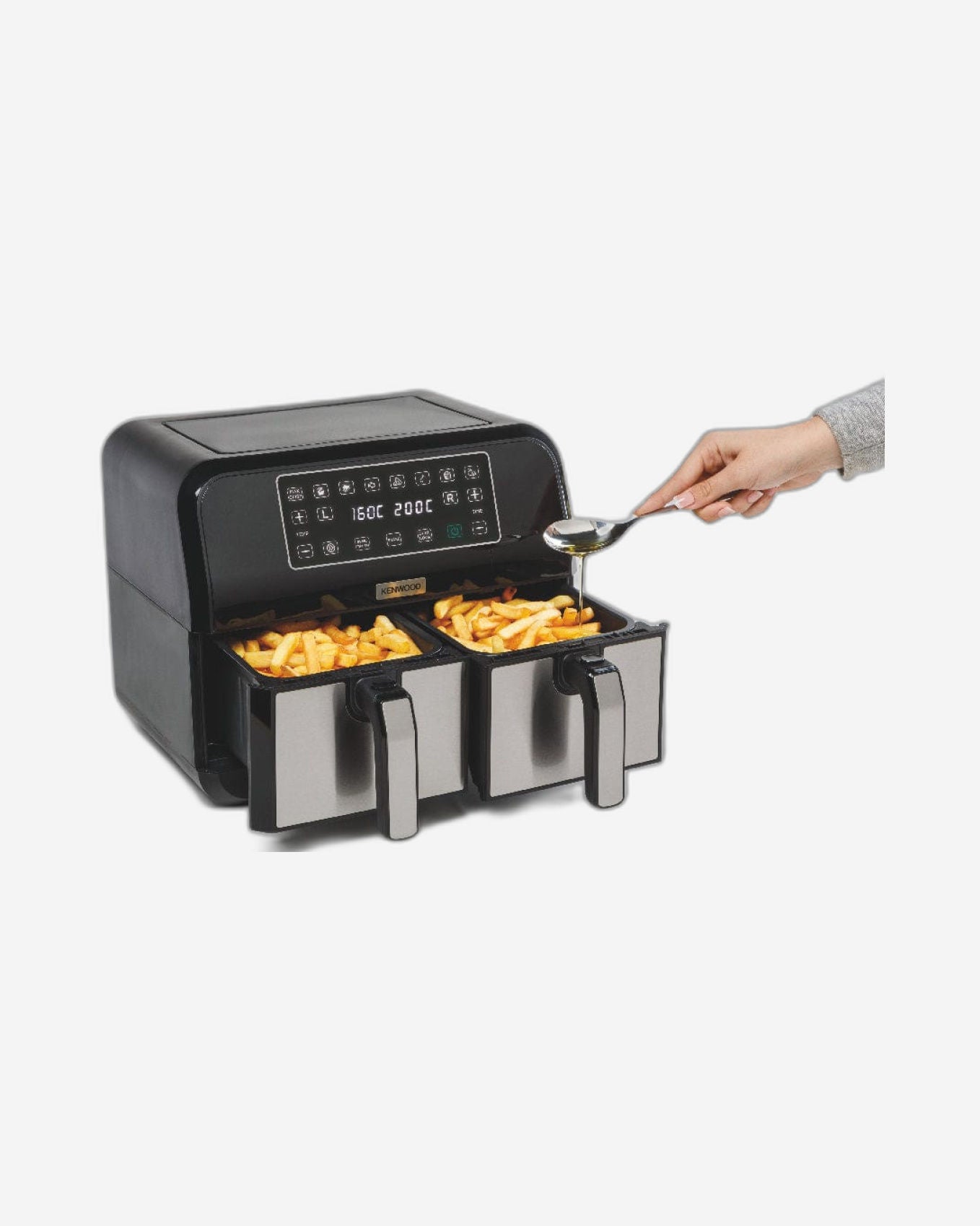 مقلاة كينوود الهوائية الرقمية المزدوجة سعة 1.7 كجم + 1.7 كجم، سعة 4 لتر + 4 لتر، مع تقنية DualZone وسلال قلي مزدوجة للقلي والشواء والشواء والتحميص والخبز والتحميص وإعادة التسخين HFM75.000MB، لون أسود