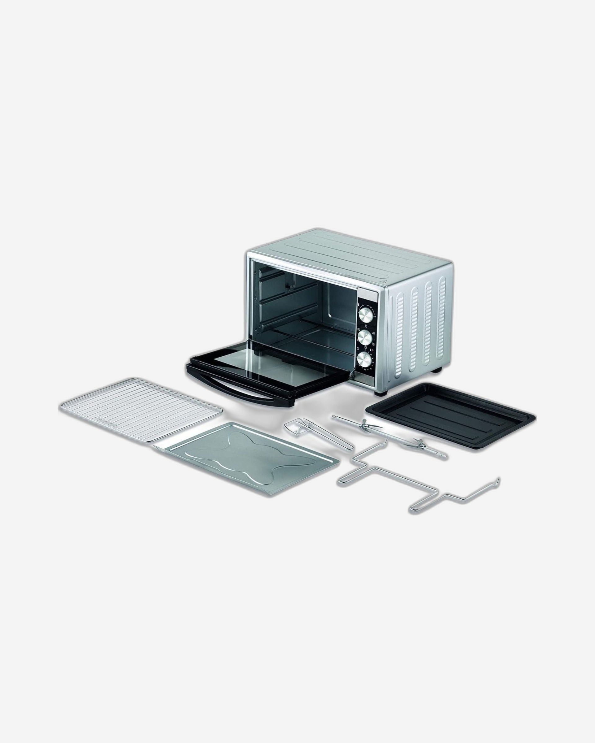 الملحقات: صينية خبز من المينا، شواية، مقبض لإزالة الشواية والسياج، سياج، صينية فتات