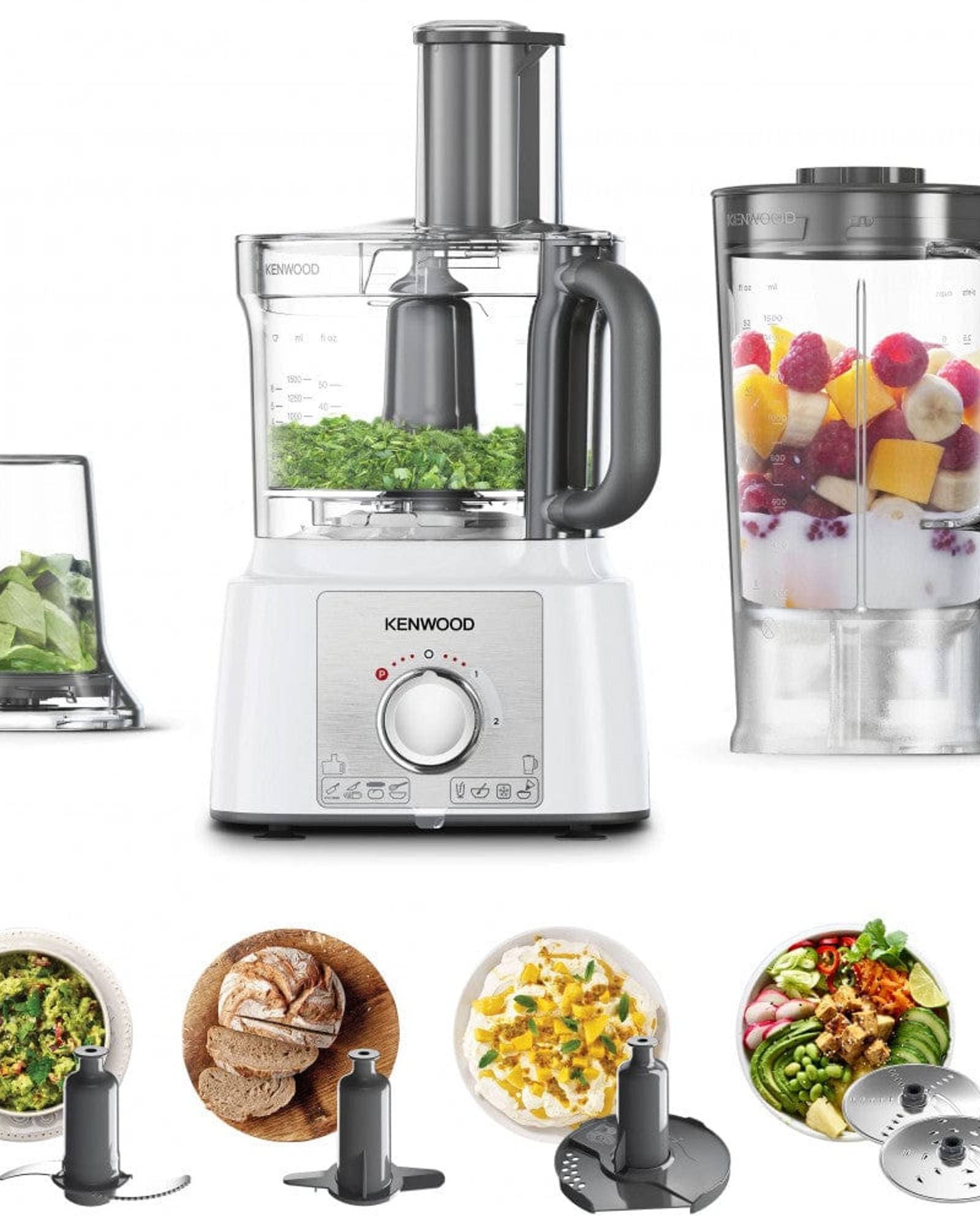 مع نظام الكل في واحد الأصلي من Kenwood، يمكنك التقطيع، والبشر، والتقطيع، والخلط، والخفق، وحتى العجن، باستخدام قاعدة واحدة.