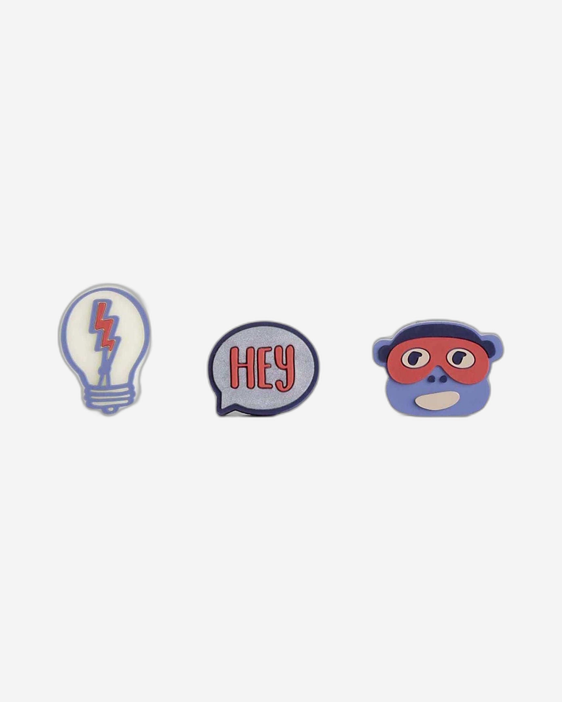 زيّن حقيبتك بسحّابات BTS Dark Glow Mix الفريدة. تتضمن هذه المجموعة الفريدة وجه قرد كيبلينج، وفقاعة كلامية تقول "مرحبًا"، ومصباحًا للأفكار. تتميز السحّابات بسطح عاكس يُضفي تأثيرًا متوهجًا في الظلام، مما يُضفي على حقيبتك مظهرًا جماليًا. مصنوعة من مادة السيليكون النقية التي تُعزز الجودة والمتانة. ستُضفي السحّابات لمسة شخصية على حقيبتك.