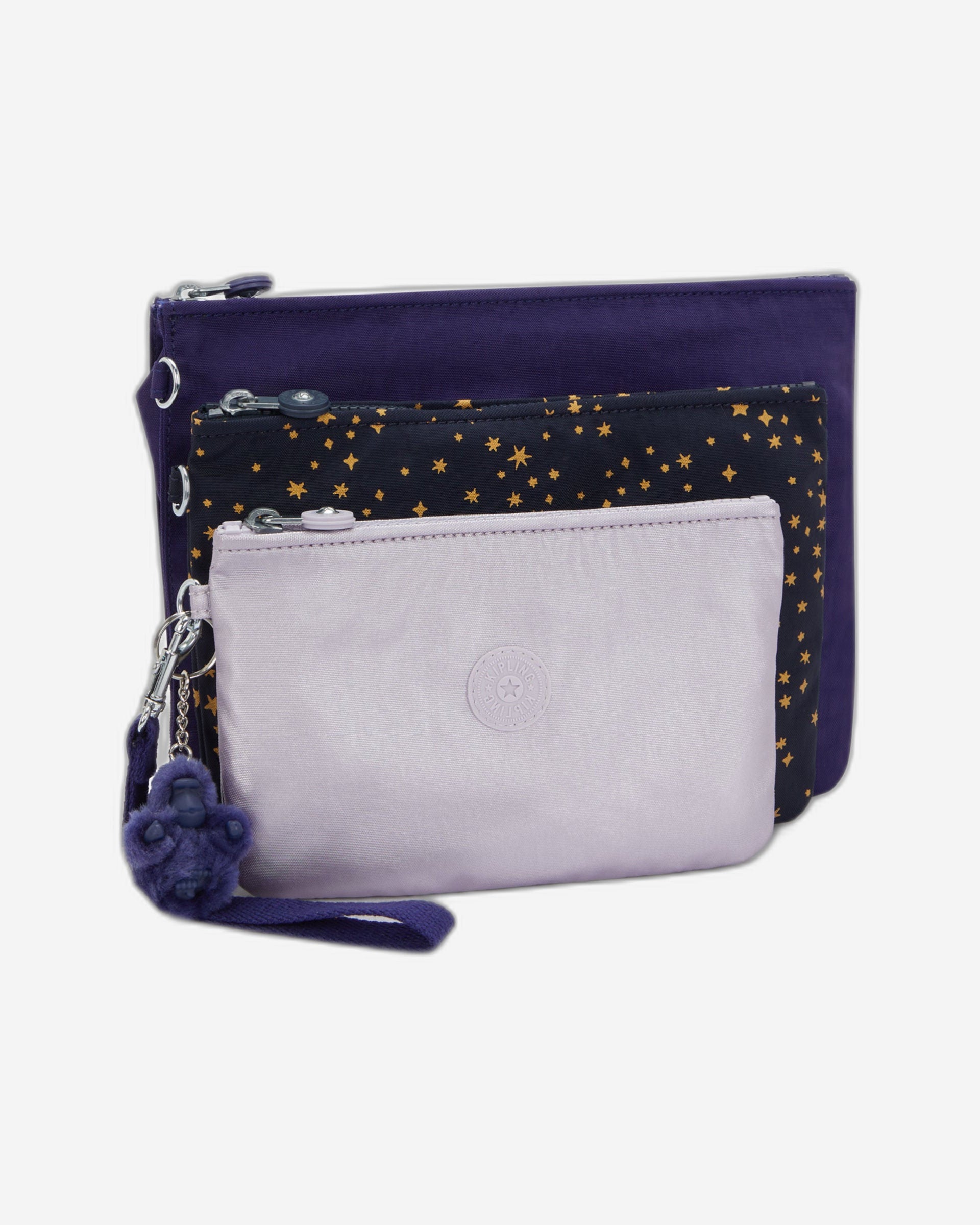 تأتي كل حقيبة بحجم مختلف، ومزودة جميعها بسحاب إغلاق محكم لحماية مقتنياتك الثمينة. كما أن حزام المعصم المتين يجعلها مثالية للسفر، أو للخروج ليلاً عندما لا ترغبين في فقدان حقيبتك.