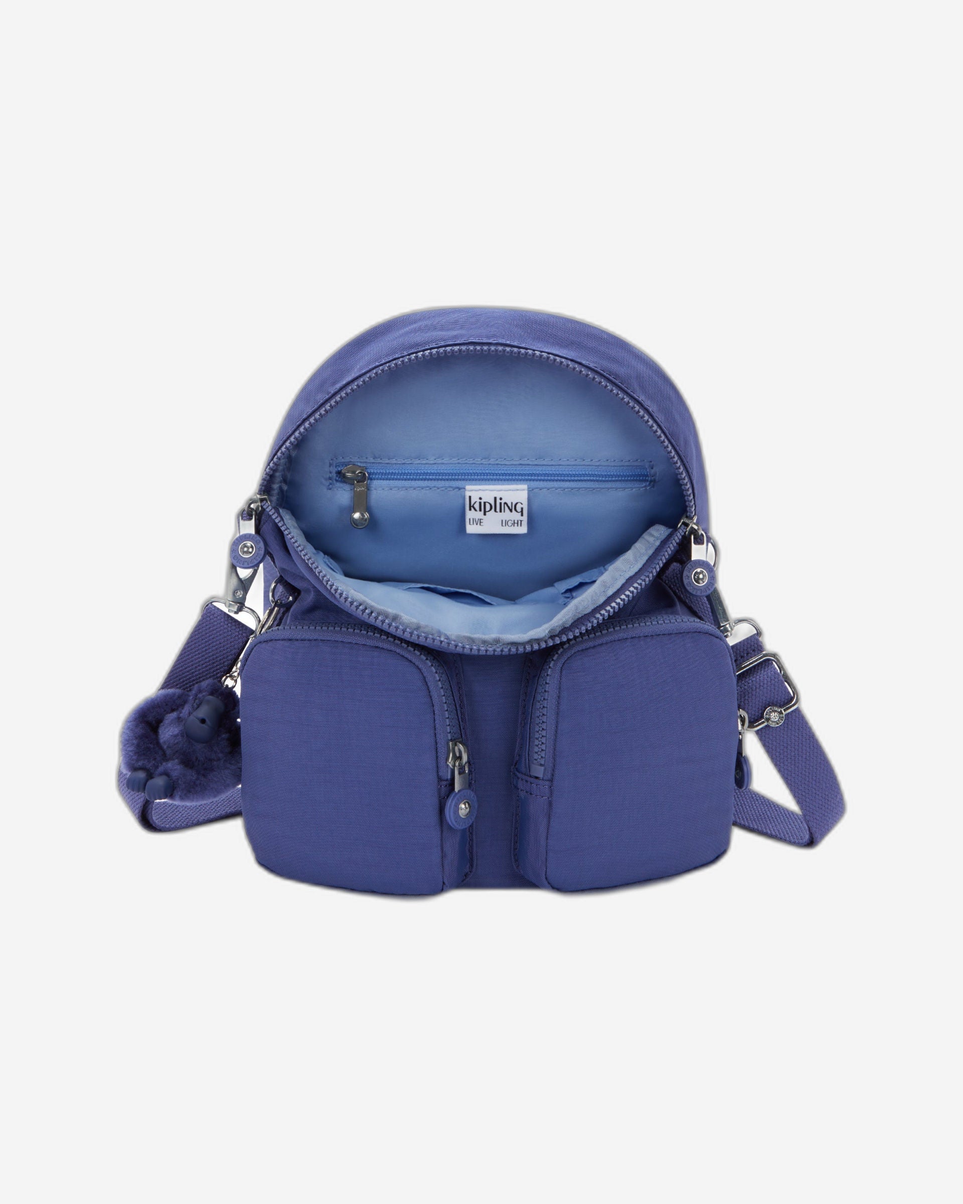حقيبة ظهر "فايرفلاي أب" قابلة للتعديل، ويمكن استخدامها أيضًا كحقيبة كتف بمجرد تعديل أحزمة الكتف. الجيب الخلفي بسحاب والجيبان الأماميان مثاليان للوصول بسهولة إلى أغراضك الأساسية طوال اليوم. الحجرة الرئيسية مزودة بقفل مغناطيسي بسحاب. ستجدين بداخلها جيبًا بسحاب، وحامل أقلام، وعلاقة مفاتيح، وجيبين عمليين. إنها حقيبة ظهر رائعة متوسطة الحجم مع سلسلة مفاتيح على شكل قرد مرحة لتضفي على يومك لمسة من البهجة!