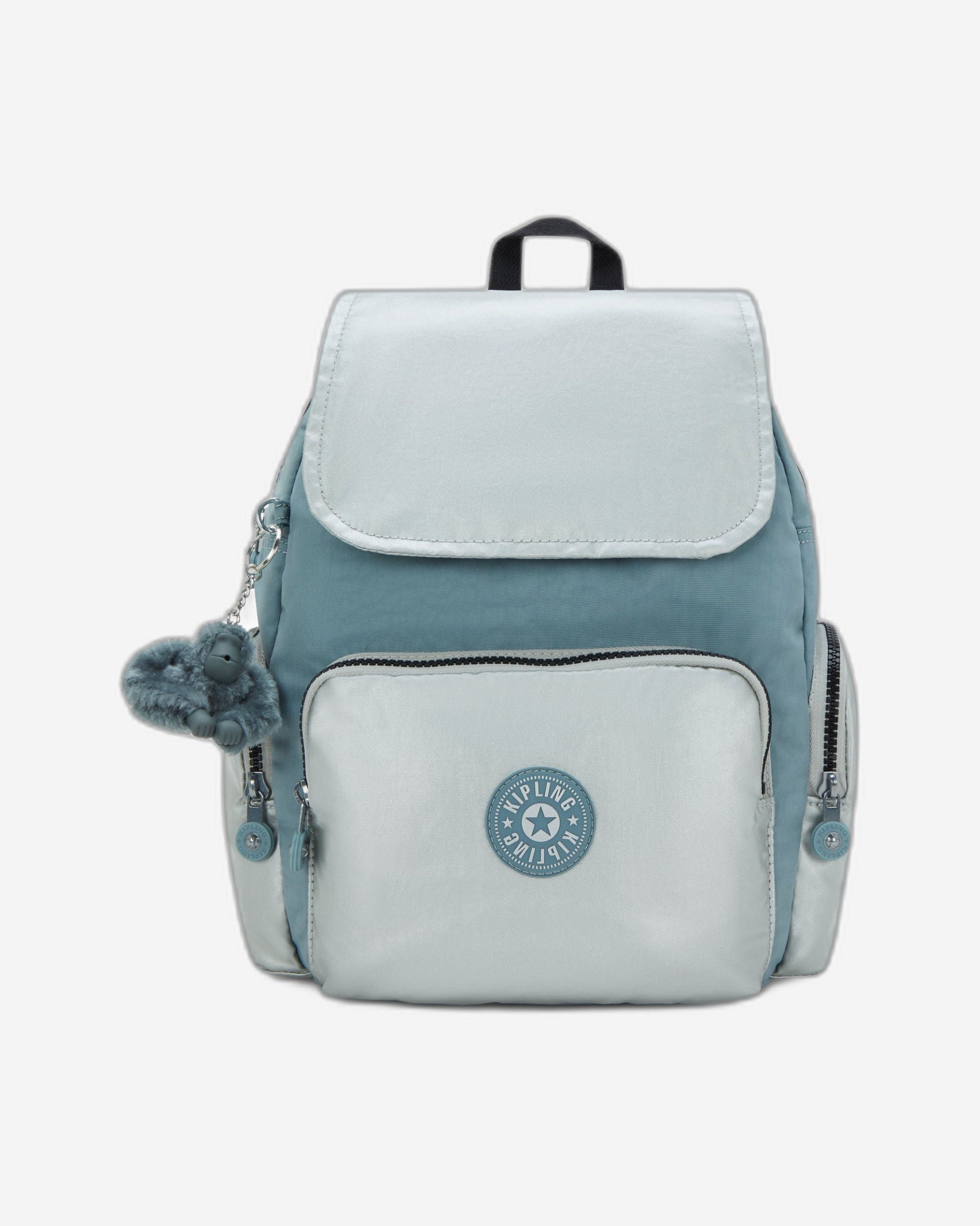 حقيبة ظهر كيبلينج سيتي زيب إس صغيرة مريحة باللون الرمادي والأزرق I5634-3FM