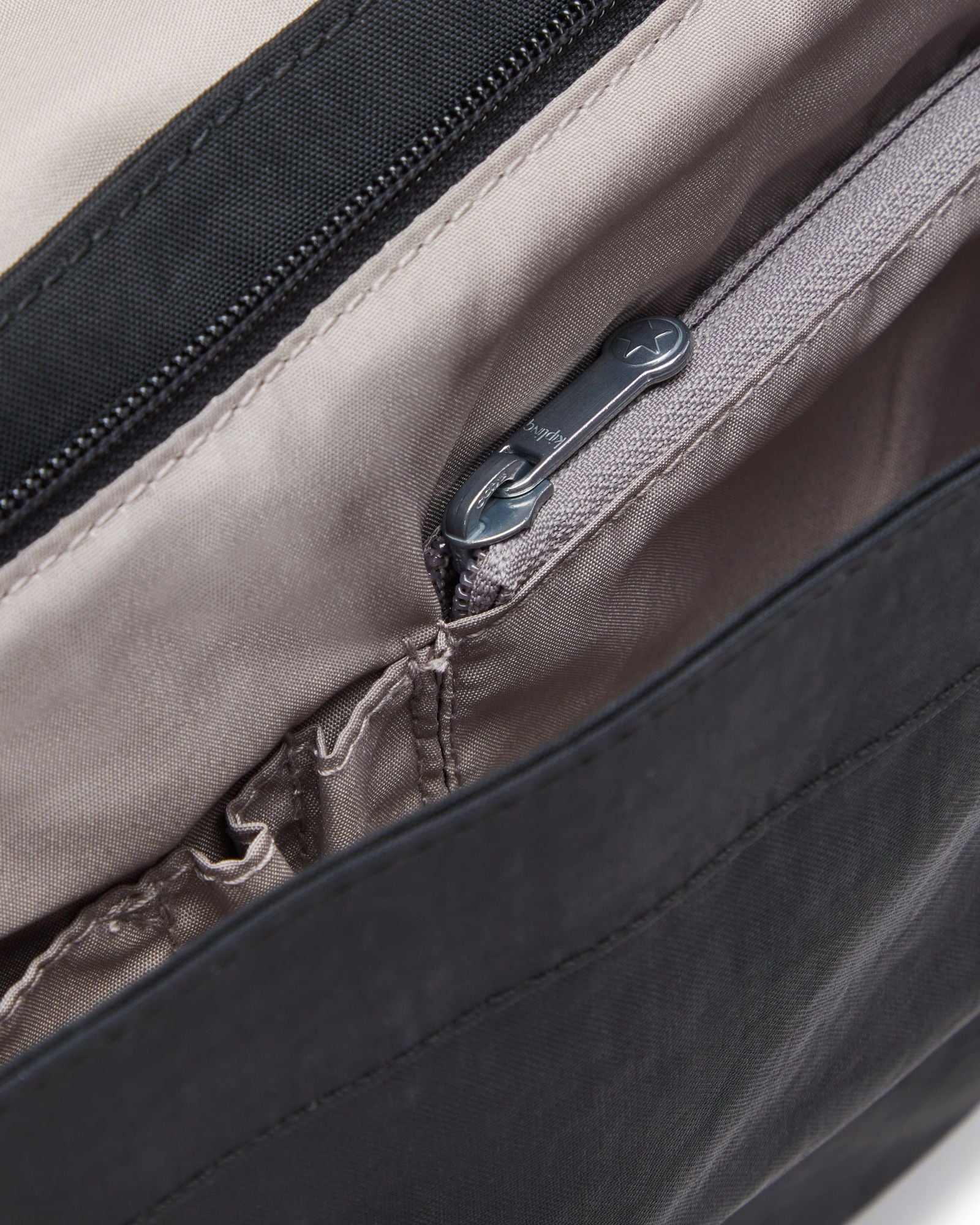 - حجرة رئيسية بسحاب تتضمن: o حجرة كمبيوتر محمول مبطنة مقاس 13 بوصة o حقيبة للهاتف المحمول o حقيبة للمحفظة