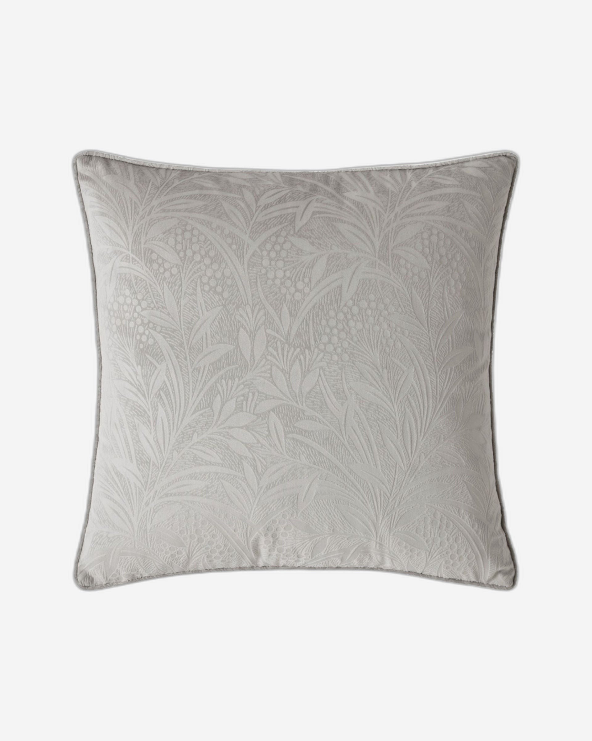 وسادة مخملية منقوشة بشكل جميل، تتميز بأغصان وأوراق شجر رقيقة على قاعدة مخملية ناعمة. مُزينة بتفاصيل أنيقة من المخمل. اختر من بين مجموعة ألوان قوية من الأزرق الداكن، والرمادي الطبيعي، والرمادي المعدني.