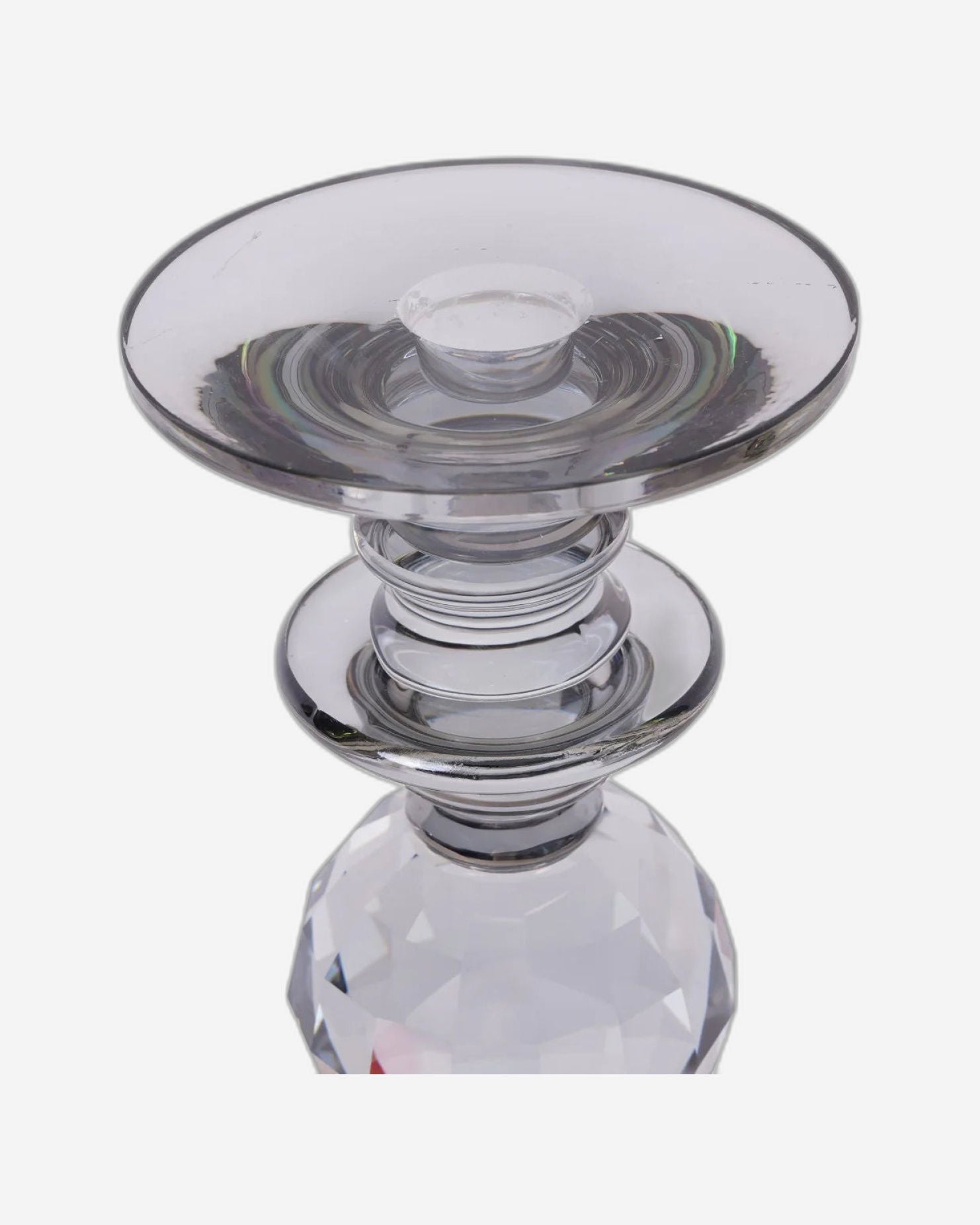 يتميز حامل الشموع العمودي الأنيق هذا بتصميم كريستالي زجاجي متعدد الأوجه يعكس الضوء، مما يخلق تأثيرًا بصريًا خلابًا. قاعدته الأنيقة تُعزز جاذبيته الخالدة، مما يجعله إضافة متعددة الاستخدامات لأي غرفة. مثالي لحمل الشموع المدببة، وهو مثالي للمناسبات الخاصة، وجلسات العشاء، أو لإضفاء لمسة من الفخامة اليومية على منزلك. متوفر بمقاسين: 26.5 سم و19.5 سم.