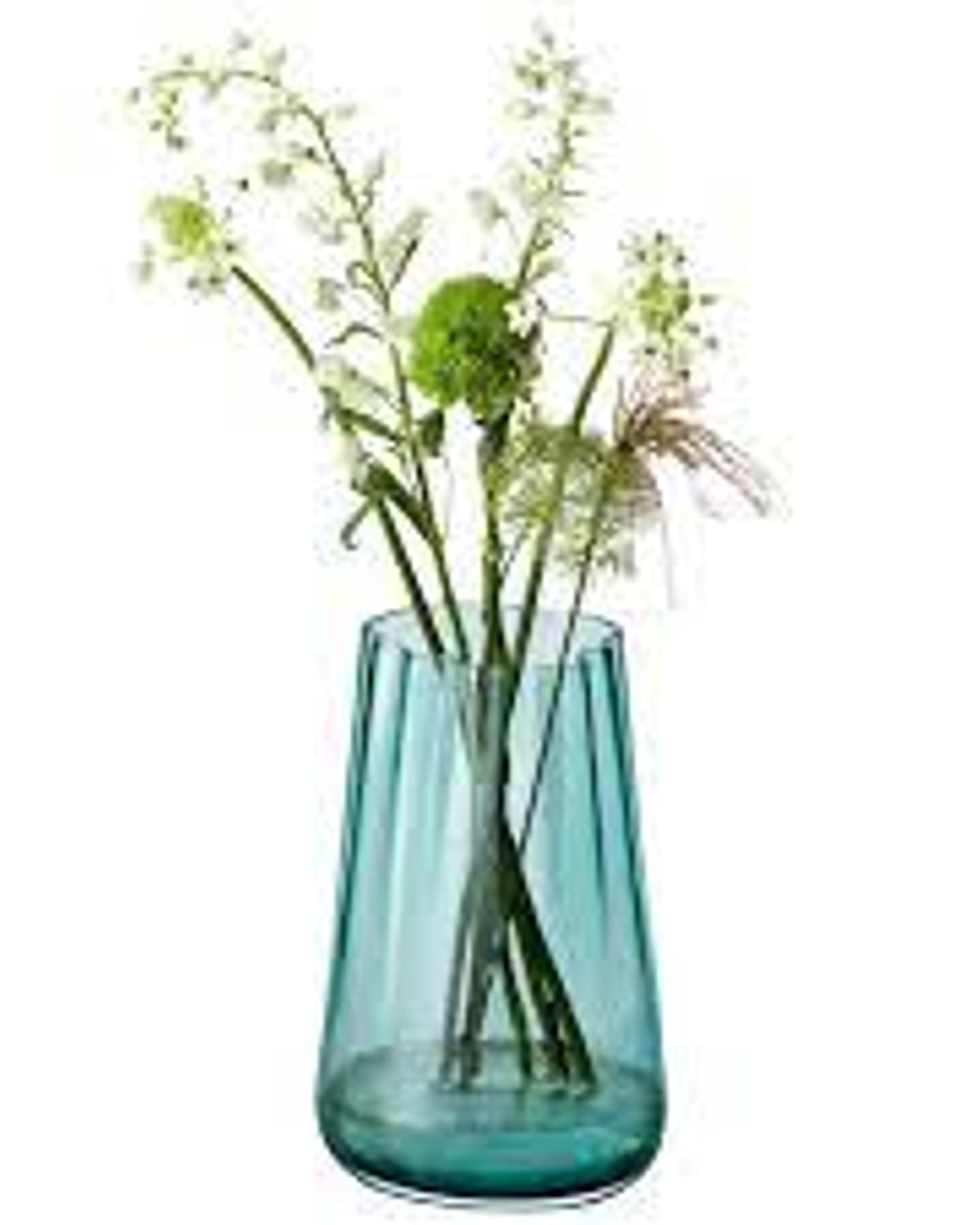 مزهرية/فانوس منفوخة بالفم منخفضة ذات شكل عضوي، مستوحاة من بحيرة. مناسبة للفانوس أو المزهرية، وترتيب الزهور بشكل طبيعي في طيات الزجاج المتموجة. متوفرة في علبة زجاجية خضراء بحرية. زجاج منفوخ بالفم. شكل عضوي. للاستخدام كفانوس أو مزهرية. متوفرة في اللون الأخضر البحري أو الشفاف.